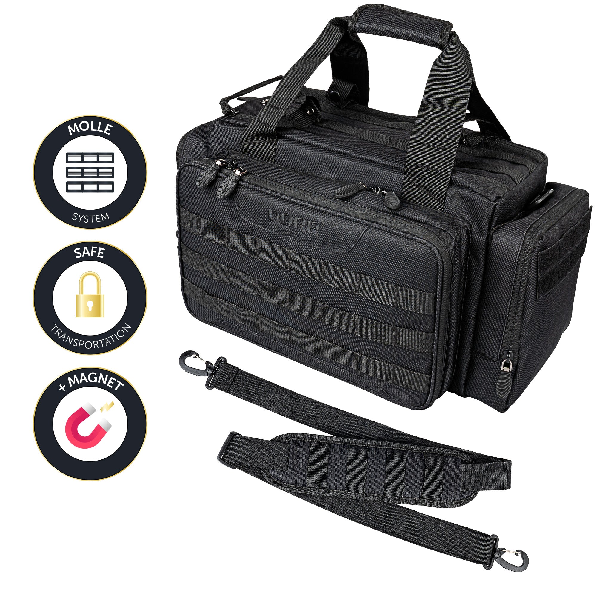 Ich kann damit Kurzwaffe, Gehörschutz, Schießbrille, Munition und für LW auch Ohrenkissen, Anschusscheiben und weiteres Kleinzeug transportieren.