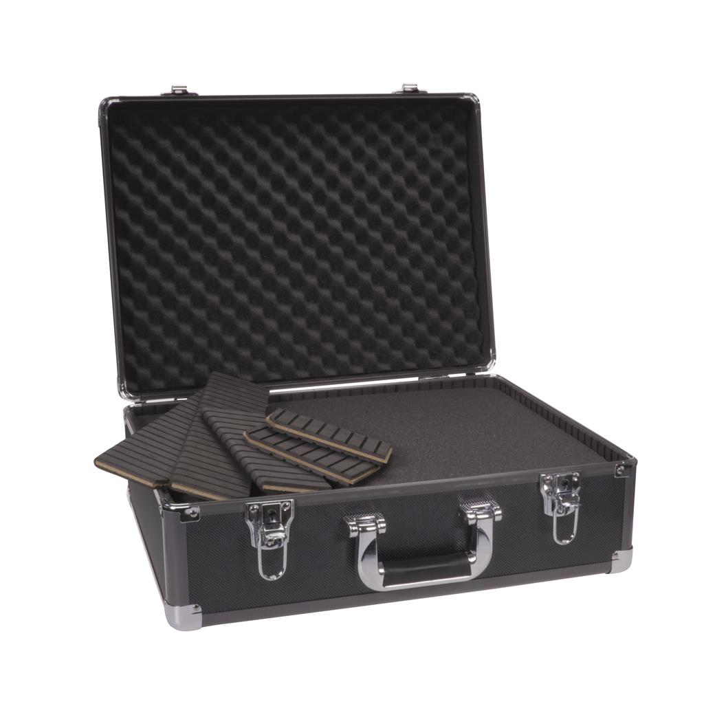 Die Ausstattung mit Würfelschaumstoff schützt das Equipment vor Stößen und Schlägen. Der Würfelschaumstoff lässt sich individuell auf den Inhalt des Koffers anpassen um alles an Ort und Stelle zu halten. Anstelle des Würfelschaumstoff können alternativ die mitgelieferten Trennwände zur Unterteilung genutzt werden.