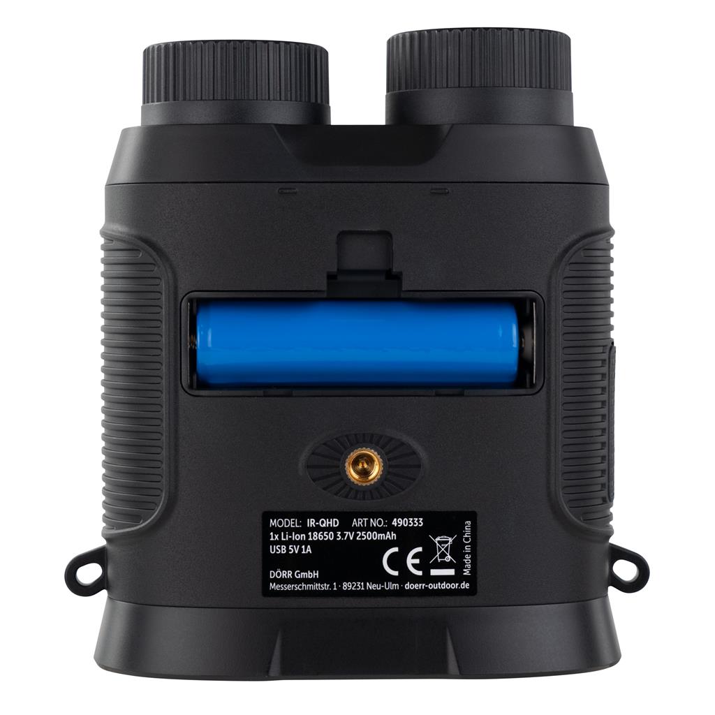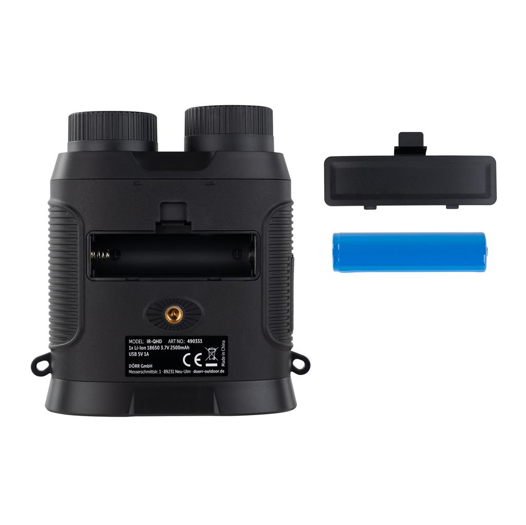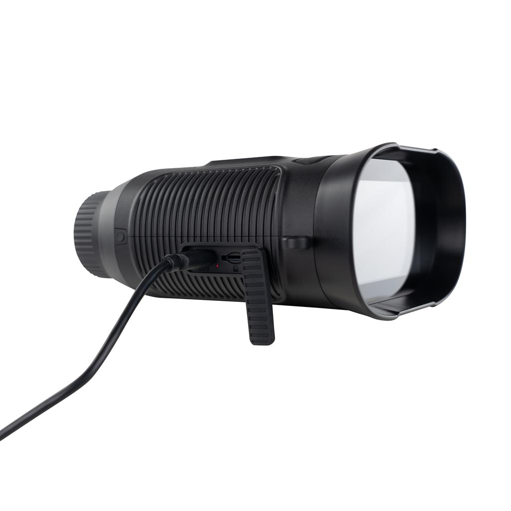 Der leistungsstarke, wiederaufladbare Lithium-Ionen-Akku ermöglicht eine Betriebsdauer von bis zu 10 Stunden im Tageslichtmodus und bis zu 4 Stunden mit aktivierter Infrarotbeleuchtung. Das IR-QHD kann einfach mit dem beigelegten USB-C-Kabel, das auch für Datenübertragung geeignet ist, aufgeladen werden.