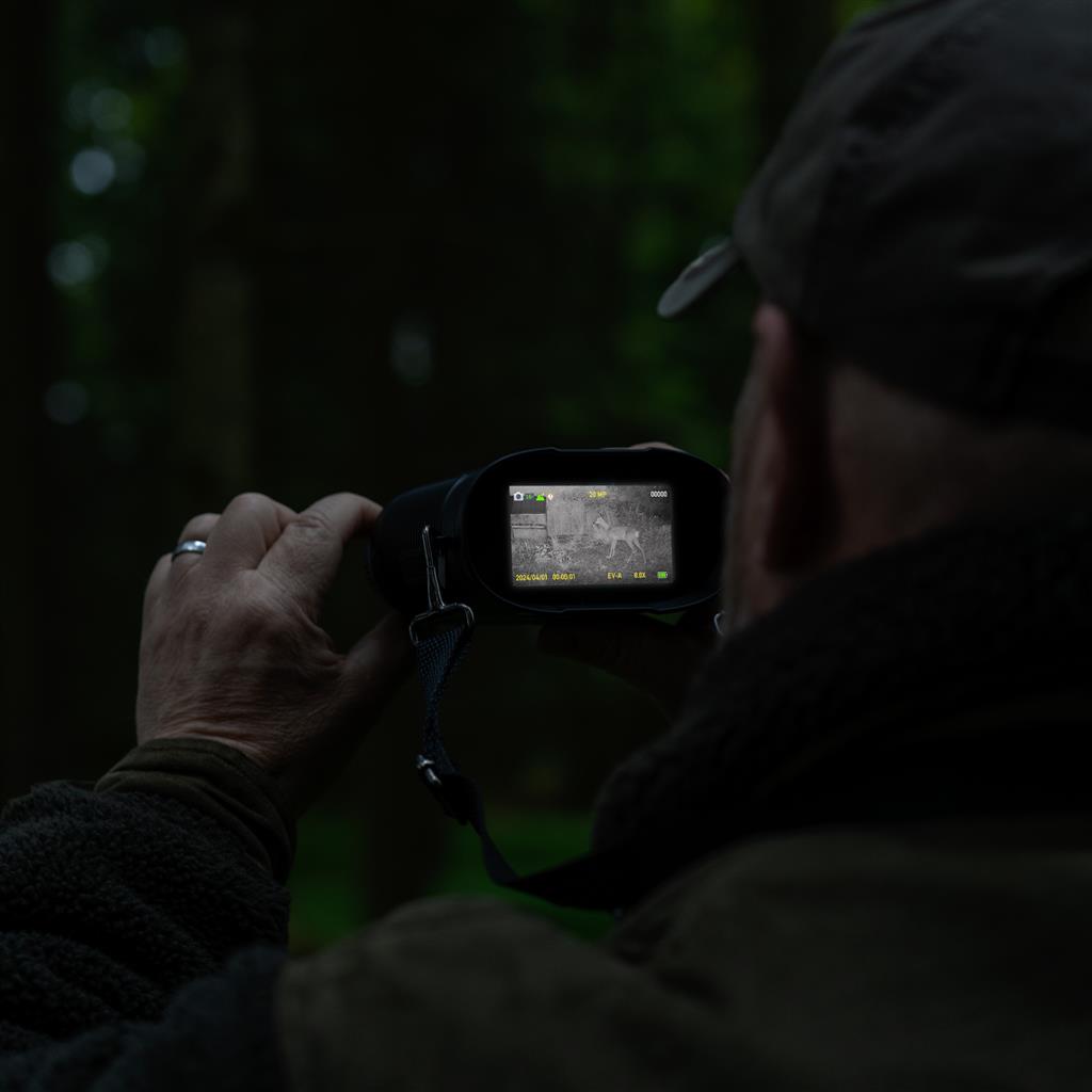 Speicherkartemicro SD/SDHC/SDXC 4GB bis max. 128GB (nicht im Lieferumfang enthalten)Serienbild (Bilder pro Auslösung)1 / 3Bildwinkel ca.10°SchutzartSpritzwassergeschütztStromversorgung1x Lithium-Ionen Akku Typ 18650 3,7V/2500 mAhAußenmaß Breite ca.13.5 cmAußenmaß Höhe ca.6.3 cmGewicht ca.300 gEinsatztemperatur ca.-30°C bis +55°CLieferumfang1x Nachtsichtgerät, 1x Li-Ion Akku, 1x USB- Daten- und Ladekabel,1x Umhängeriemen, 1x TascheFarbeschwarzDigitales BildformatJPEGDigitales VideoformatAVIStativ Anschlussgewinde 1/4 ZollJaStromversorgung inkl.JaVergrößerung8-fach digitaler ZoomBetriebsdauer ca. (mit voll aufgeladenem Akku)10 h bei Tag / 4h mit InfrarotbeleuchtungAußenmaß Länge ca.13 cmGehäuseABSAutomatische AbschaltungJaLadebuchseUSB-CHinweis LieferumfangAbgebildetes Zubehör, das nicht im Lieferumfang aufgeführt ist, nicht inklusive.Reichweite bis ca. [m]300 m bei Tag / 150 m bei NachtZeitstempel auf BildDatum und UhrzeitInfrarotbeleuchtungIR LED 3 W, 850 nm, in 3 Stufen einstellbarAufnahmemöglichkeitBild / Video ohne TonBildsensorCMOSVideoauflösung2.5K QHD, Full HD 1080P, 1080P, HD 720PDisplay3'' LCD FarbdisplayMenüspracheDE, GB, FR, ES, IT, CZ, DK, FI, HU, NL, SEWiedergabe im DisplayBild und VideoBildauflösung [MP]3MP, 5MP, 8MP, 10MP, 20MP, 25MP, 30MP, 40MPHinweisWir behalten uns vor, technische und/oder gestalterische Änderungen ohne Ankündigung vorzunehmen.