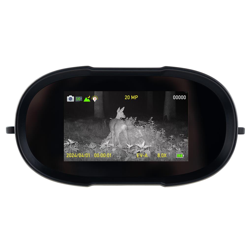 Das Nachtsichtgerät ist mit einem extra großen 3-Zoll-LCD-Farbdisplay ausgestattet, das eine ausgezeichnete Bildqualität liefert. Die Displayhelligkeit kann flexibel in neun Stufen eingestellt werden, was in jeder Umgebung für eine optimale Sicht sorgt. Zusätzlich zur Darstellung von hochauflösenden Fotos ermöglicht der Sucher auch die Wiedergabe von Videos, sodass du deine Aufnahmen direkt vor Ort überprüfen und betrachten kannst.