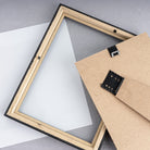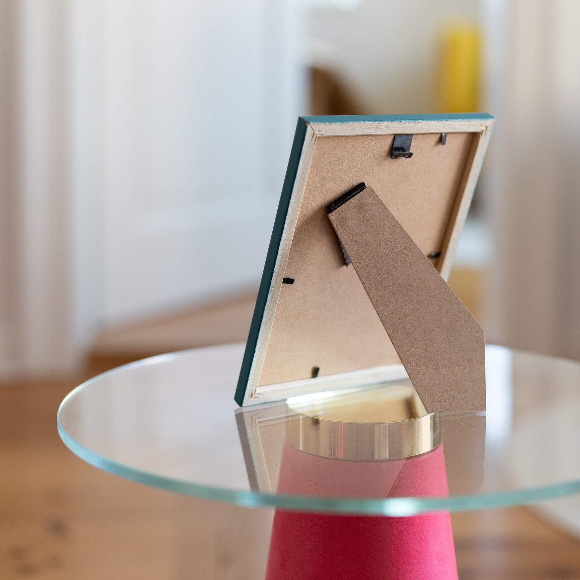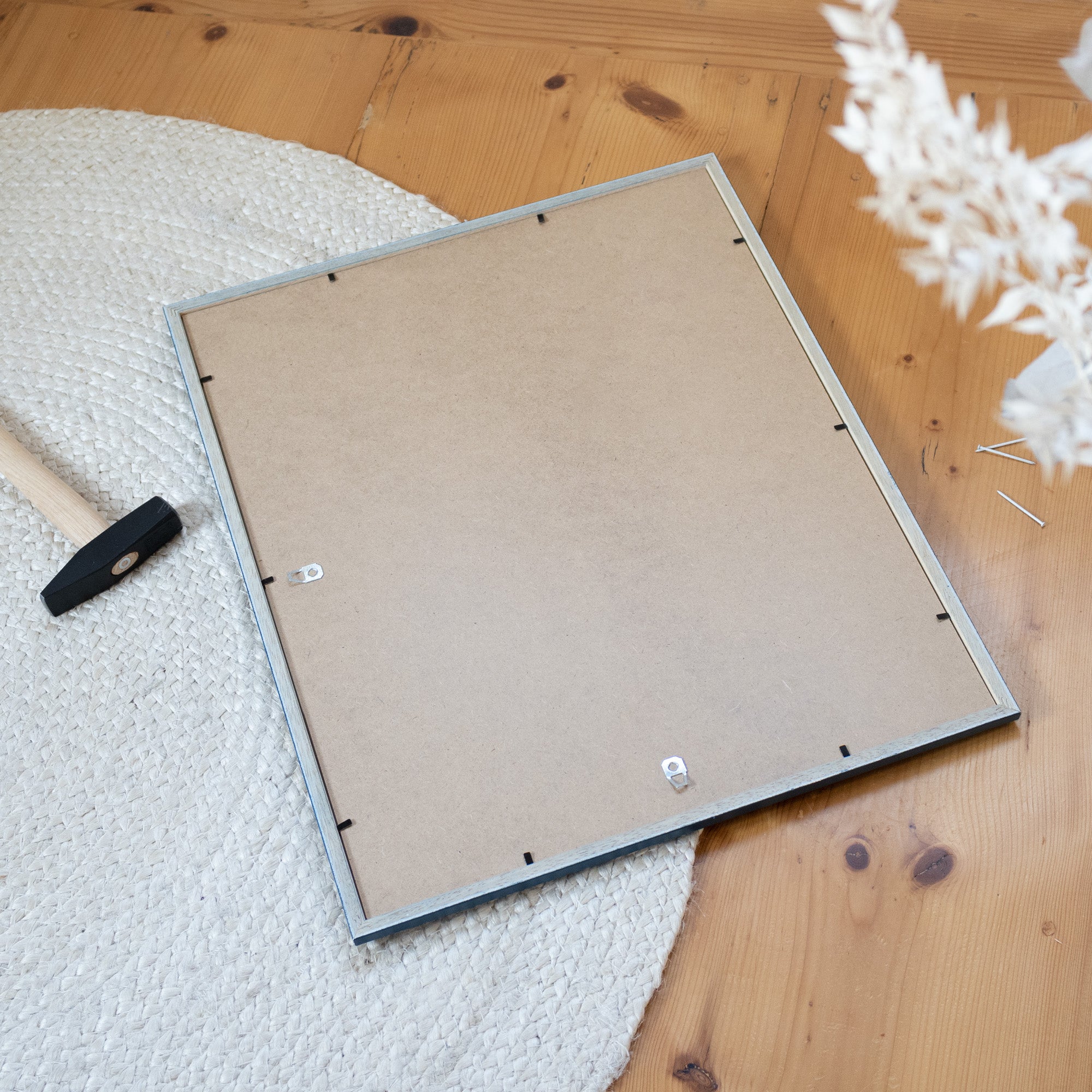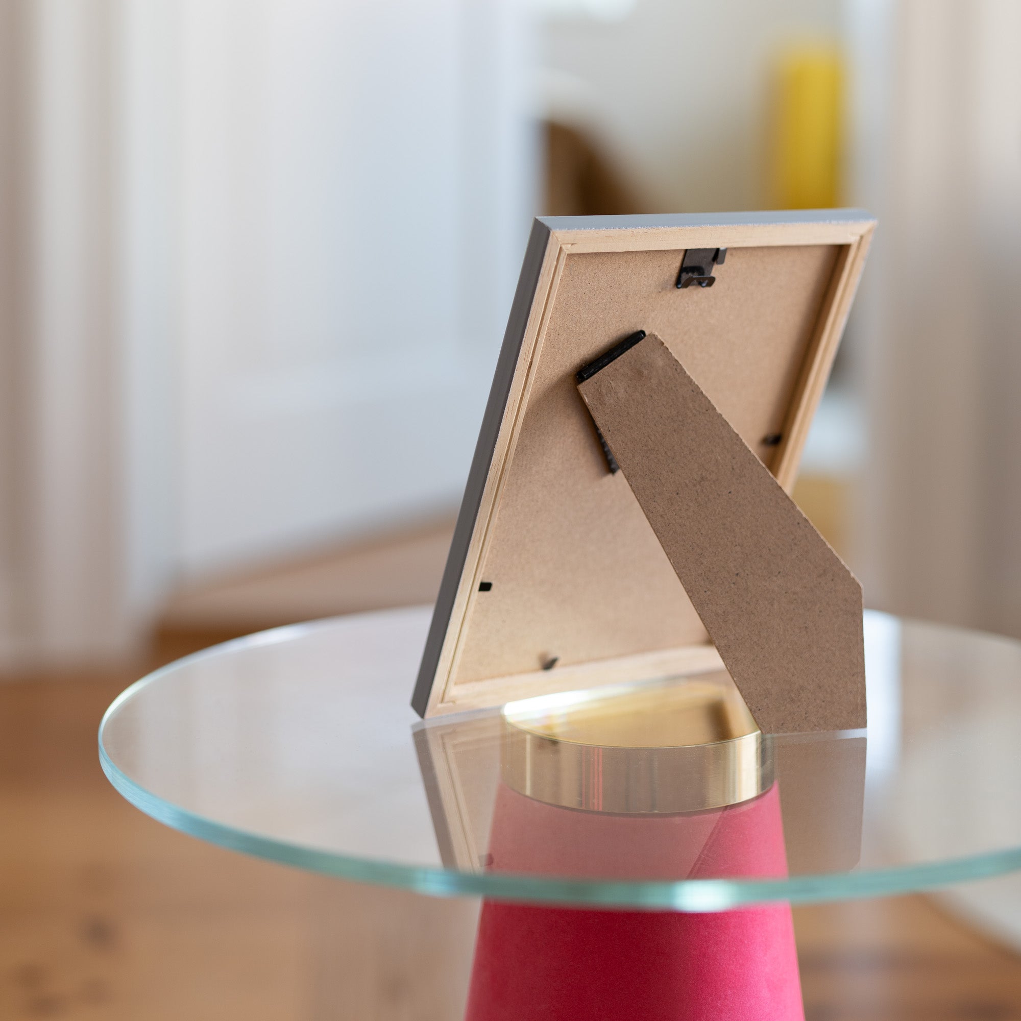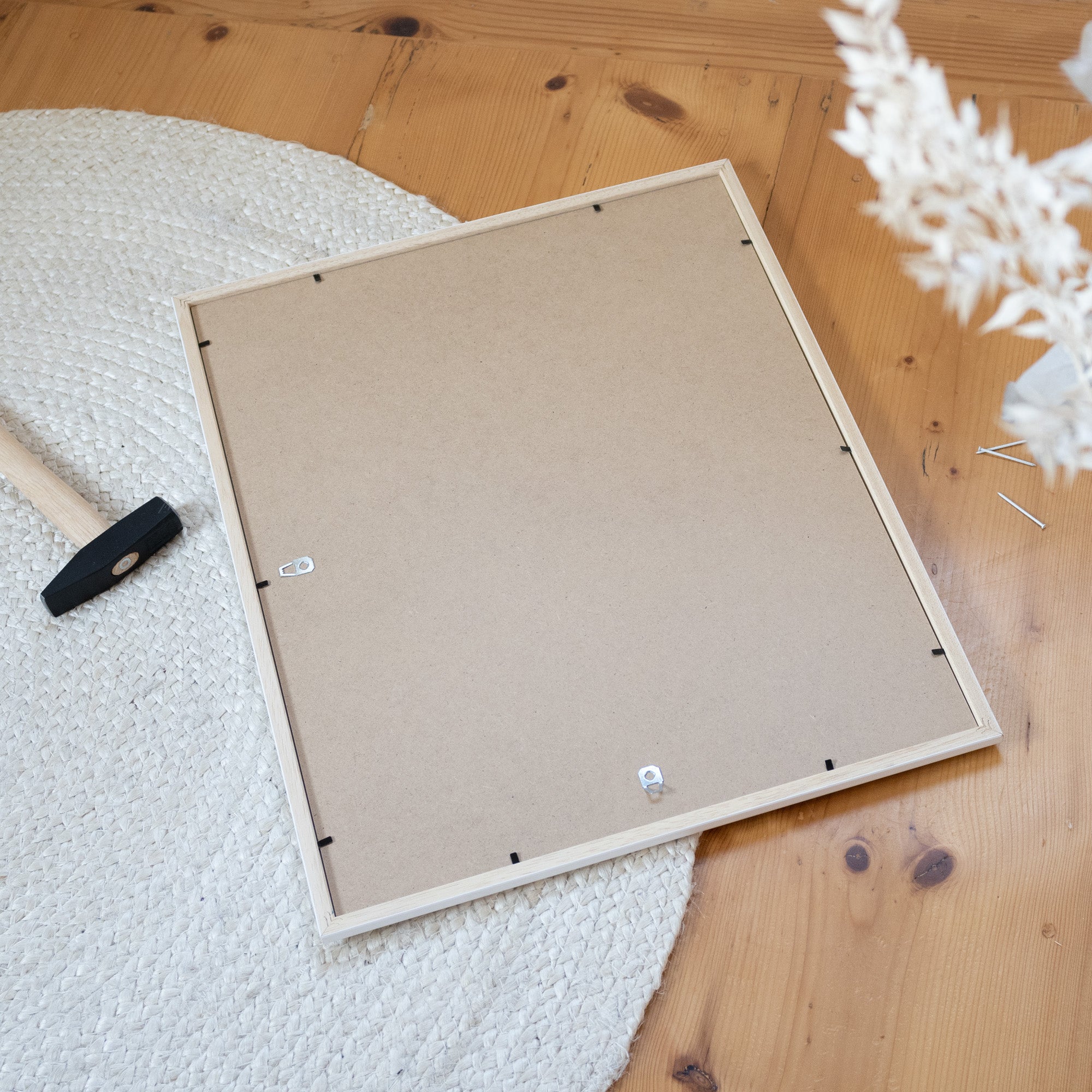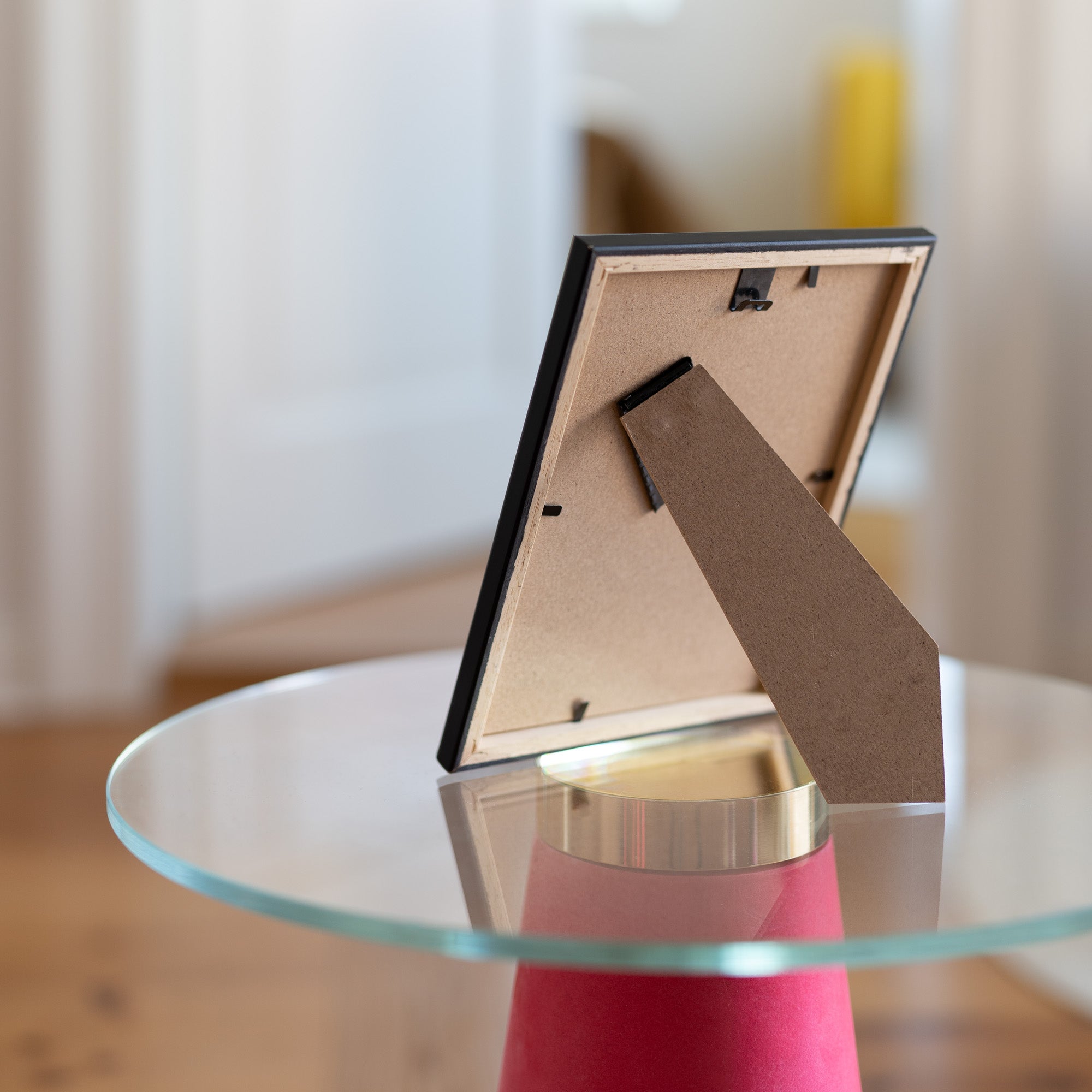 Die stabile MDF-Rückwand ist mit Metallaufhängern ausgestattet, sodass du den Bilderrahmen sowohl im Hoch- als auch im Querformat aufhängen kannst. In den Größen 10x15, 13x18 und 15x20 verfügen die Holzrahmen zusätzlich über einen praktischen Aufsteller, um sie flexibel auf Tisch, Kommode oder Regal zu platzieren.