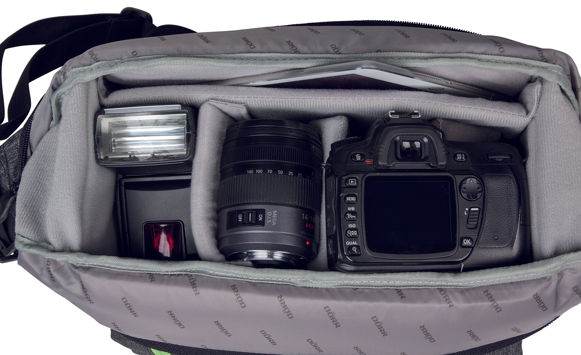 Außenmaß Breite ca.22 cmAußenmaß Höhe ca.28 cmGewicht ca.1360 gLieferumfang1x Tasche, 6x Trennwände, 1x Regenschutz-CoverFarbegrau/limetteTaschenfassungsvermögen Kamera1 kompakte & 1 große SLR KameraTaschenfassungsvermögen Objektive4 ObjektiveTaschenfassungsvermögen Blitz1 SystemblitzgerätGrößeLTaschenartFototascheTablet-/Laptopfach16''Trageriemen ArtLängenverstellbar, mit Anti-Rutsch AuflageAußenmaterialStrapazierfähiges D950 PolyesterInnenmaß Breite ca.15 cmInnenmaß Höhe ca.24 cmInnenmaß Länge ca.36 cmAußenmaß Länge ca.48 cmInnenmaterialSoft-Lining (100% Polyester)ExtrasTrolley-SchlaufeExtra Staub-& RegenschutzcoverJaHinweis LieferumfangAbgebildetes Zubehör, das nicht im Lieferumfang aufgeführt ist, nicht inklusive.HinweisWir behalten uns vor, technische und/oder gestalterische Änderungen ohne Ankündigung vorzunehmen.