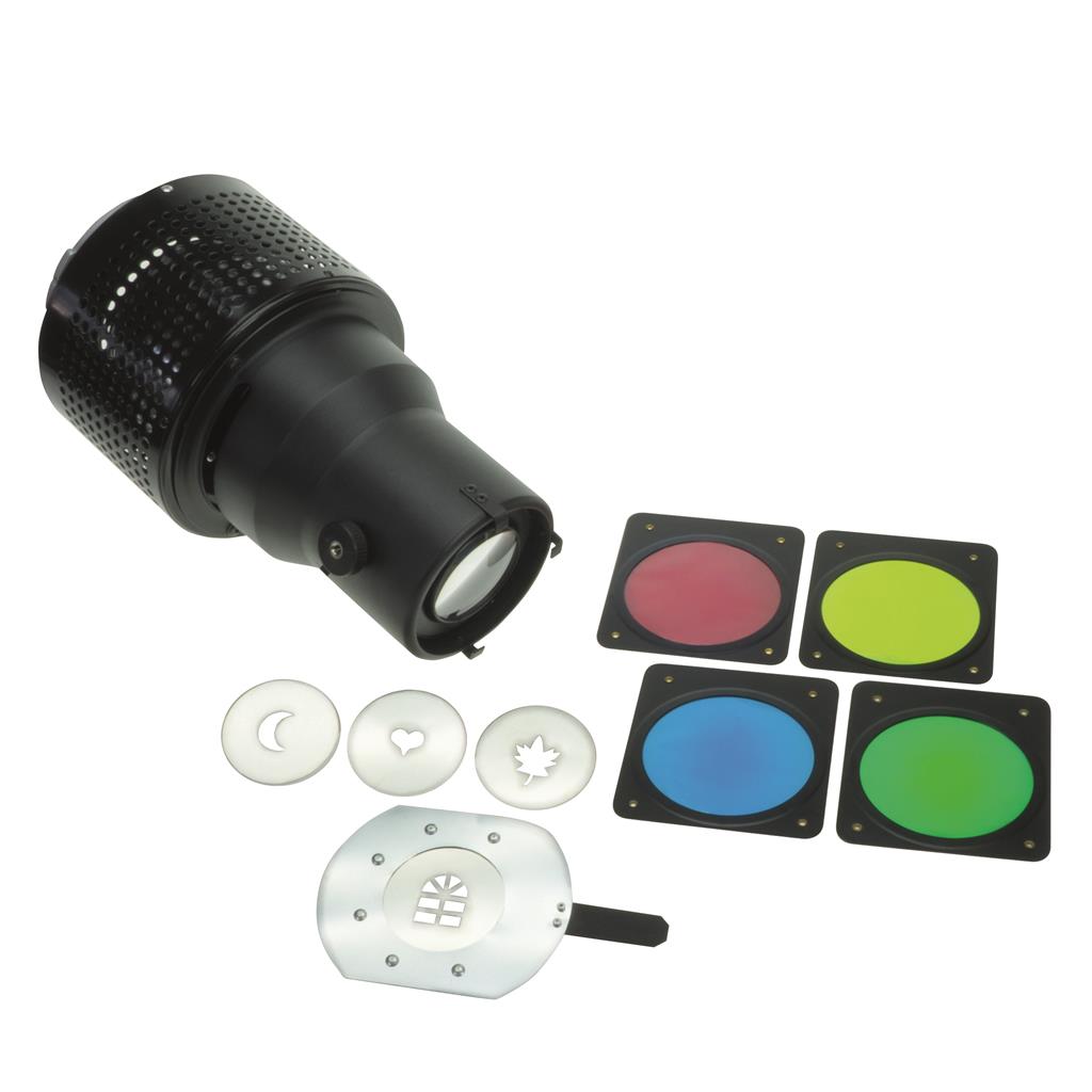 - Das Licht wird gebündelt, besonders als Haar- oder Effektlicht geeignet, Wabeneinsätze und Farbfilter erweitern den Einsatzbereich.