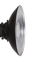 Beauty Dish aus Metall für kontrastreiche und brillante Aufnahmen.