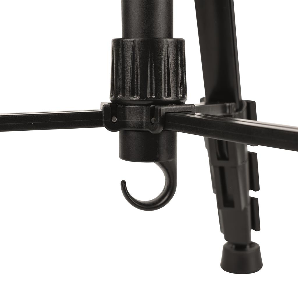 Die Mittelsäule des HD-140 Stativs kann variabel mit einer Handkurbel aus- und eingefahren werden. Die fixierbaren Mittelstreben sorgen für stabilen und sicheren Stand. Für noch mehr Stabilität, kann an dem Haken unterhalb der Mittelsäule ein Zusatzgewicht aufgehängt werden.