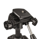Der 3-Wege-Stativkopf ist mit einem Führungsgriff ausgestattet, mit dem Sie den Kopf bequem und ruckelfrei drehen und neigen können. Die Schnellwechselplatte mit ¼“ Kameragewinde lässt sich nach oben klappen, um schnell und einfach von Querformat auf Hochformat einstellen zu können. Für einen Kameratausch kann die Schnellwechselplatte mit einem Verschlussriegel zügig gelöst werden. Eine Zweit- bzw. Ersatzschnellwechselplatte ist optional erhältlich (klicken Sie hier).