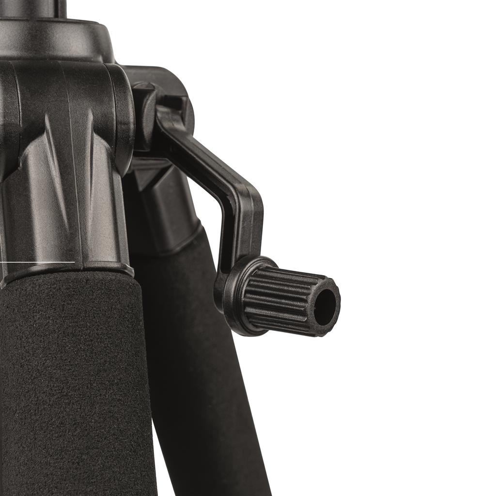 Die Stativbeine können mit 3 Auszügen auf die gewünschte Höhe eingestellt werden. Die praktischen Clip-Verschlüsse lassen sich mit nur einer Hand schnell lösen und fixieren. Die beweglichen Gummifüße sorgen für rutschfesten Stand auf glatten Böden.