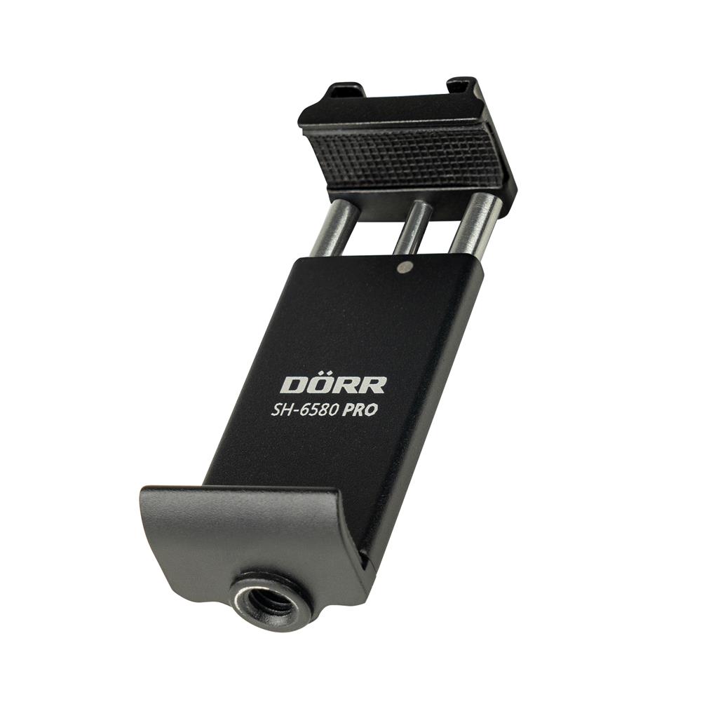 Mit dem stabilen DÖRR Smartphone Halter SH-6580 PRO aus hochwertigem Aluminium befestigen Sie Ihr Smartphone schnell und einfach zum Beispiel auf ein Stativ, auf einen Kugelkopf, ein Tischstativ oder auf ein anderes Haltesystem mit ¼ Zoll Anschlussgewinde.