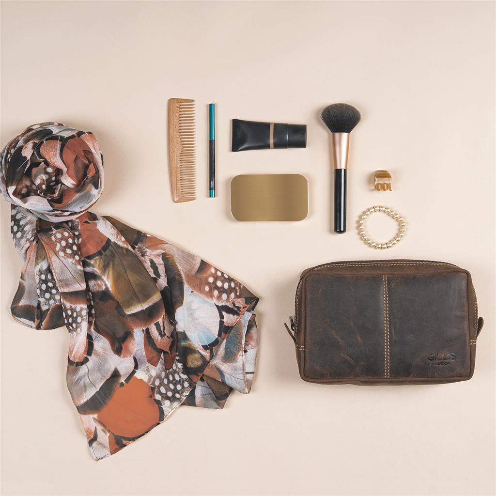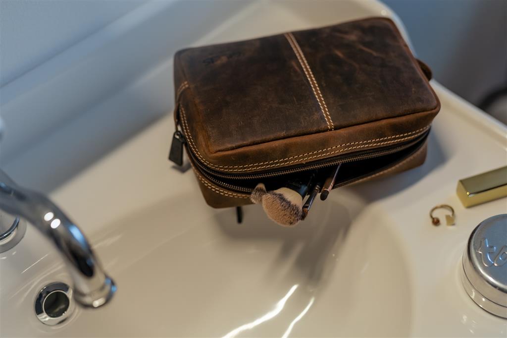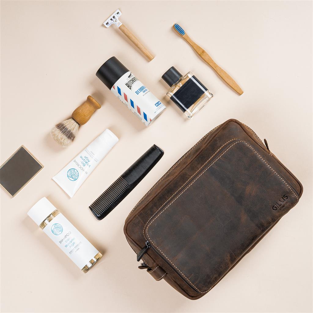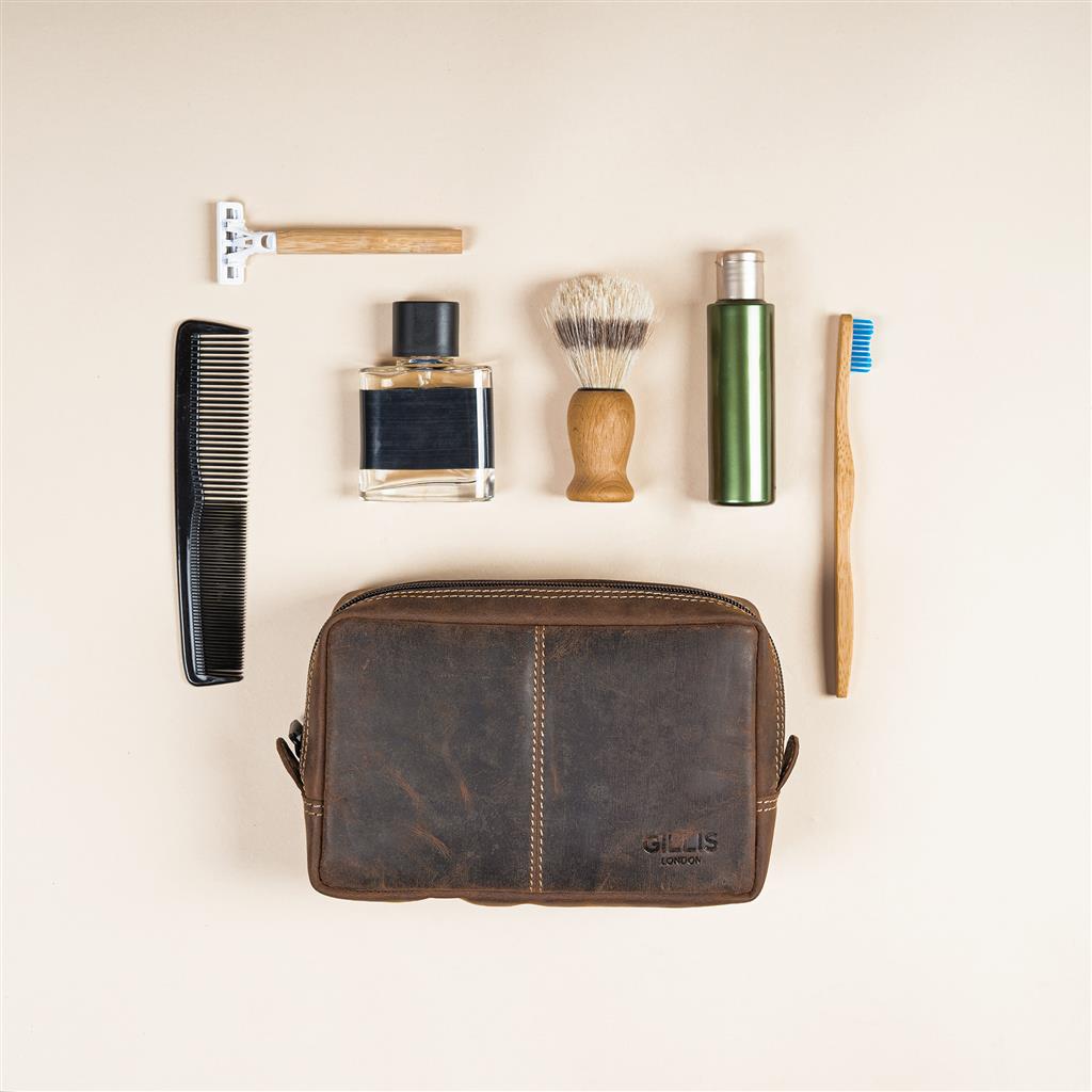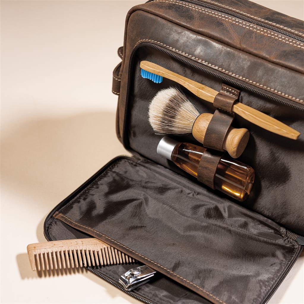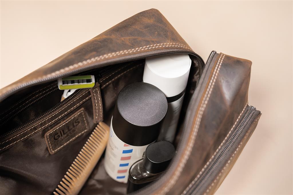 Leder Kulturbeutel Wellington vintage braun