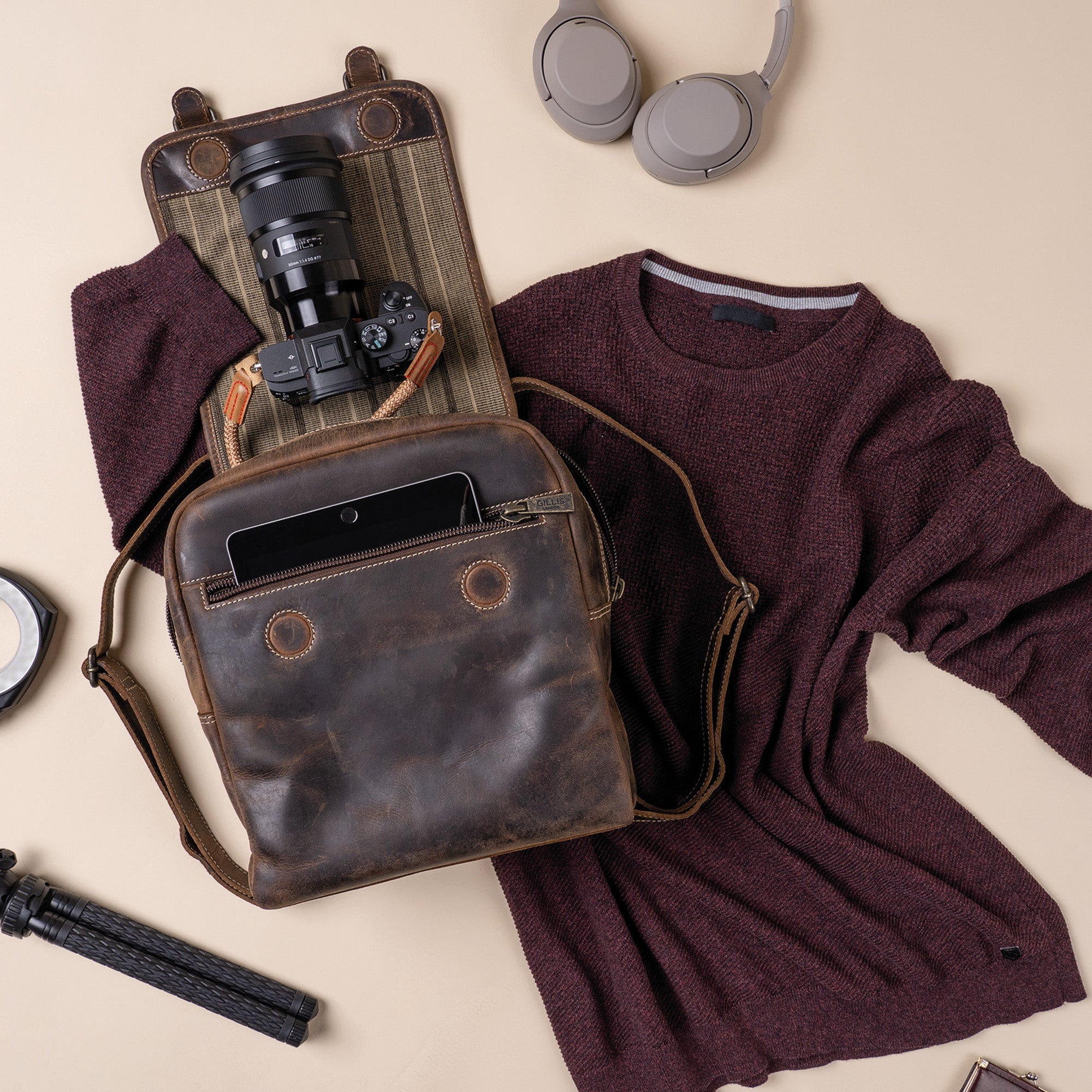 Außenmaß Breite ca.16 cmAußenmaß Höhe ca.30 cmGewicht ca.1580 gLieferumfang1x Rucksack, 1x Fotoabteil mit Deckel, 4x Trennwände, 1x StaubschutzhülleFarbevintage brownTaschenartFotorucksackAußenmaterialEchtes LederInnenmaß Breite ca.14 cmInnenmaß Höhe ca.28 cmInnenmaß Länge ca.26 cmAußenmaß Länge ca.28 cmVerschlussMagnetverschluss/Reißverschluss innenInnenmaterial100% BaumwolleAnzahl Trennwände4 xInnenmaße Fotoabteil ca. [cm]24,5 x 14 x 10Hinweis LieferumfangAbgebildetes Zubehör, das nicht im Lieferumfang aufgeführt ist, nicht inklusive.Herausnehmbares FotoabteilJaHinweisWir behalten uns vor, technische und/oder gestalterische Änderungen ohne Ankündigung vorzunehmen.