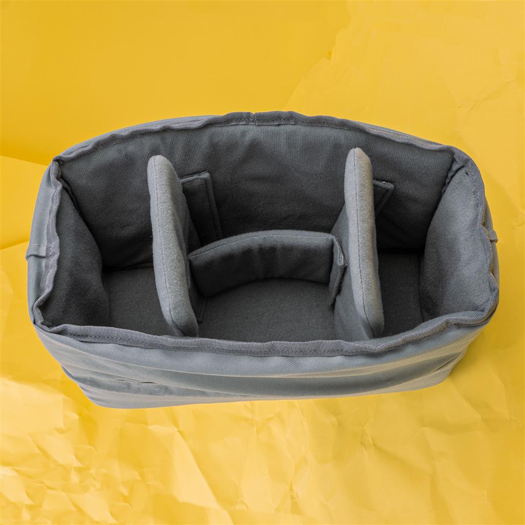 Weiterhin ist der Fotoeinsatz mit 3 gepolsterten Trennwänden bestückt, welche schnell und einfach durch ihre Klettverbinder neu angeordnet werden können. Somit kann der Innenraum individuell nach dem jeweiligen Bedarf ein-/aufgeteilt werden und Ihre Kamera, sowie Ihre Objektive und Ihr Blitz haben einen festen und geschützten Platz. Die hellgraue Farbe hilft dabei kleines Zubehör besser zu erkennen und leichter zu finden.