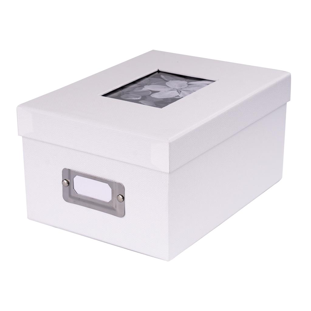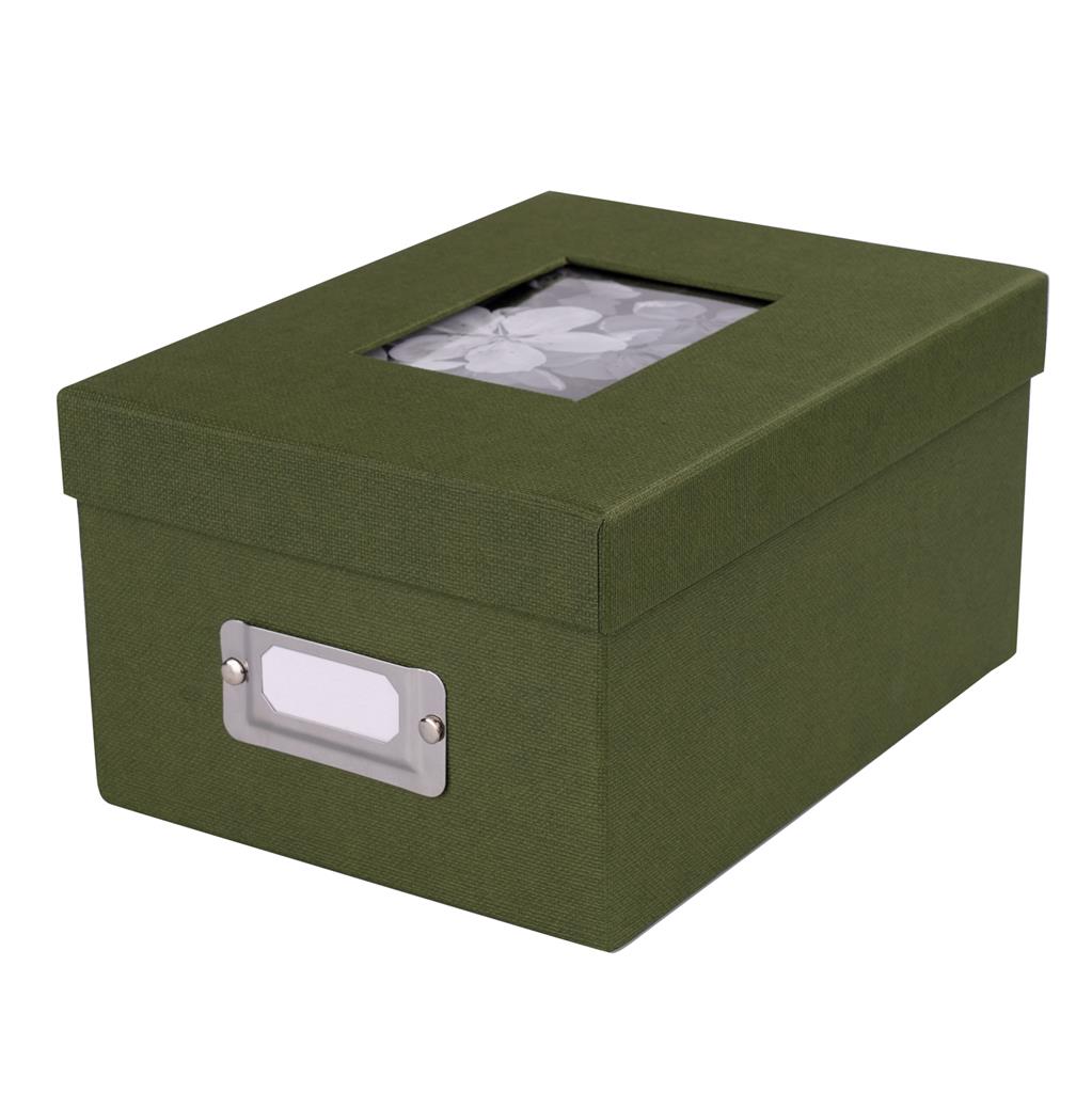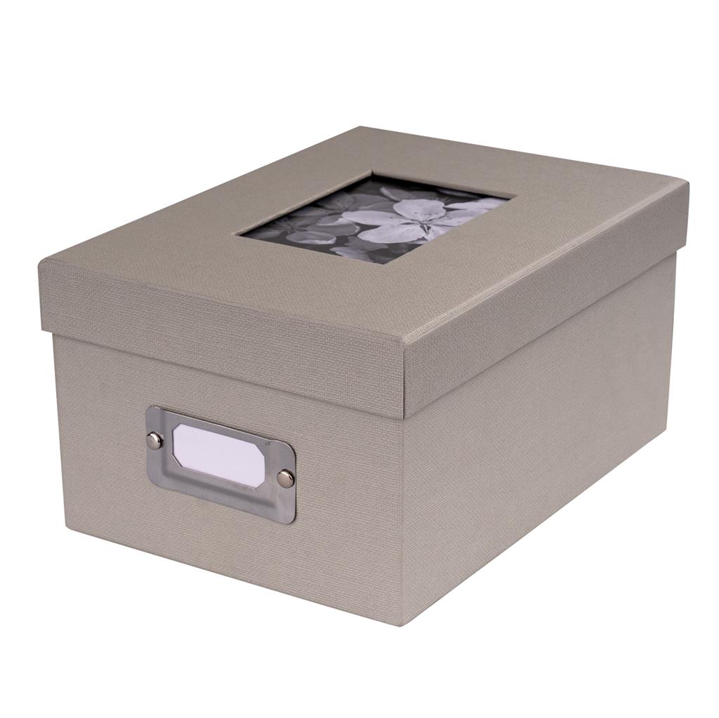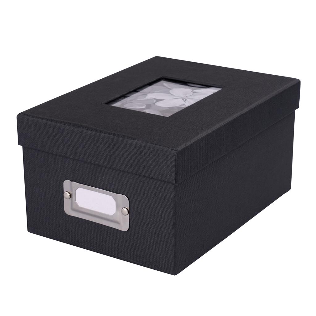The window on top of the box (7x10 cm) can be equipped with your favourite photo. Metal labeling field on the front side. Including index cards.