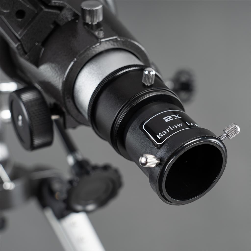 The two-lens Barlow lens is simply inserted between the telescope and the eyepiece and fixed with a knurled screw. It is suitable for all eyepieces with a diameter of 1.25".