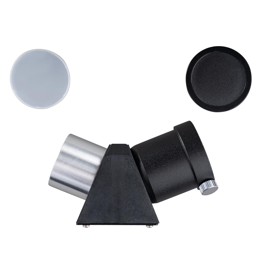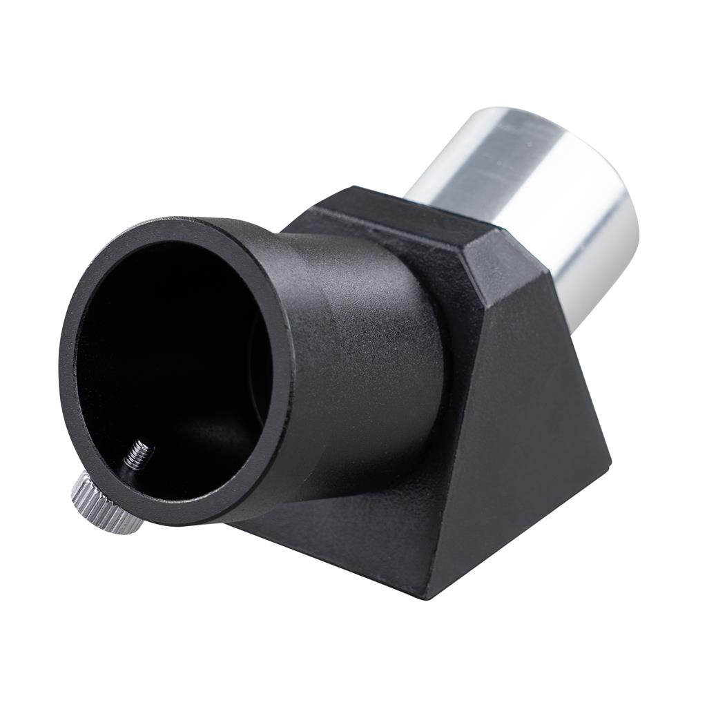 angled view from above. The diagonal mirror fits eyepieces with a socket diameter of 1.25".