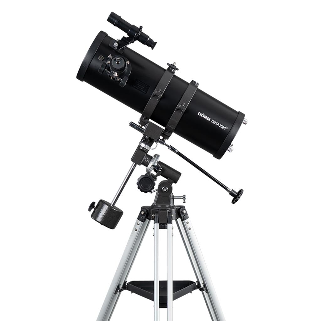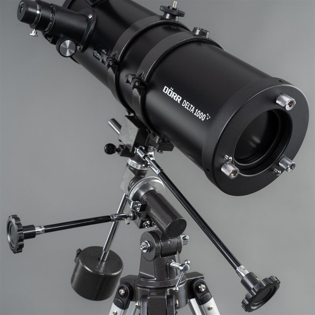 The extensively configured DÖRR Reflector Telescope DELTA 1000 is the ideal device for beginners with ambitious standards. But also advanced astro users will have fun with the mirror telescope. The very stable telescope is easy to use and features a tripod, EQ1-mount, finder scope, 3 eyepieces, 2-times Barlow lens and a moon filter. The DELTA 1000 ensures impressive observations of the moon, planets, stars, brighter nebulae, open star clusters and globular star clusters. Even details of larger planets such as Saturn's ring or Jupiter's moons become visible.