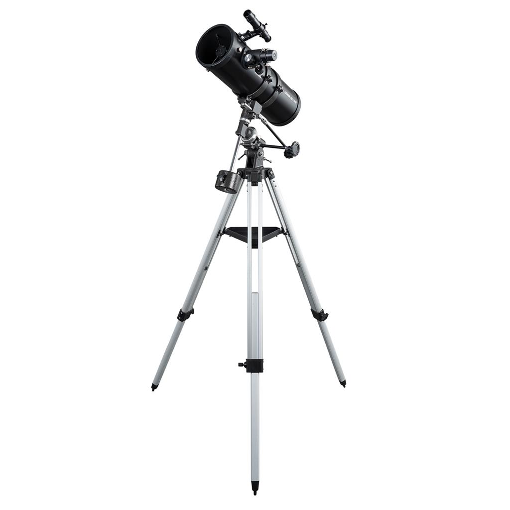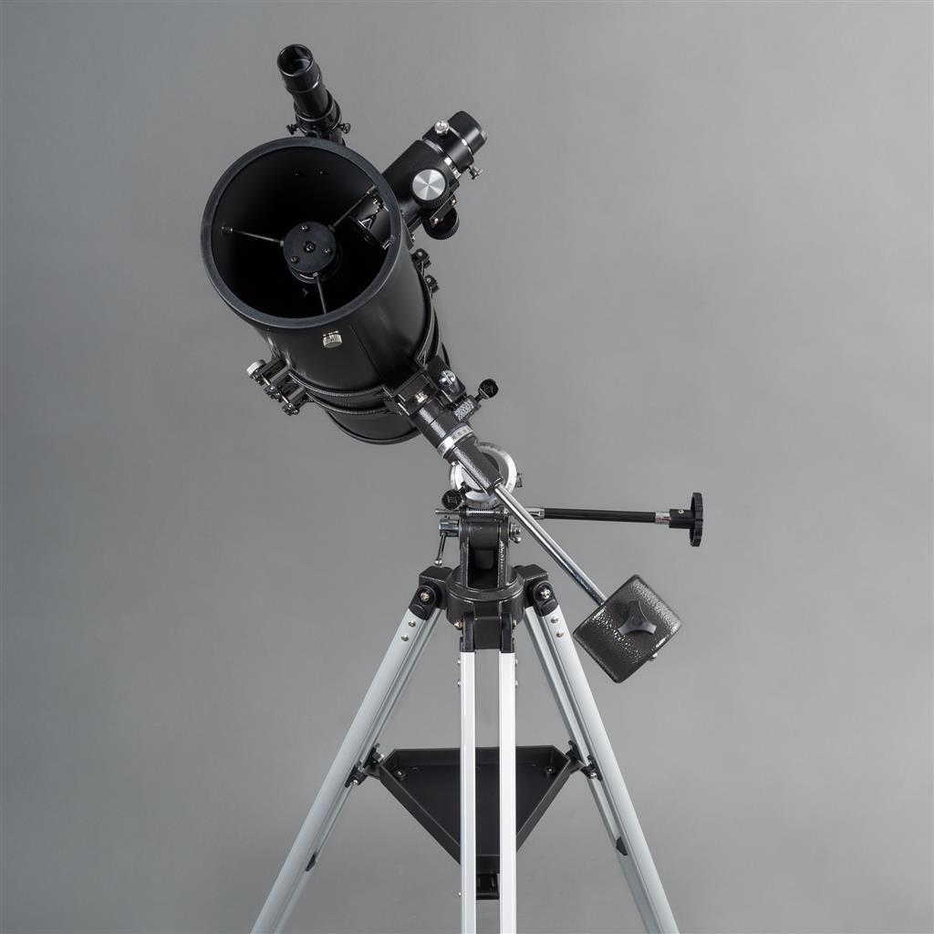 Gewicht ca.6000 gLieferumfang1x Teleskop, 1x Sucherfernrohr, 4x Okulare, 1x Barlowlinse 2x, 1x Mondfilter, 1x Montierung , 1x StativFarbeschwarz mattObjektivdurchmesser114 mmVergrößerung max.500 xVergrößerung min.50 xBrennweite1.000 mmTeleskop MontierungEQ-2 ÄquatorialTeleskop BauartKatadioptrisches Spiegelteleskop (Reflektor Teleskop)Stativhöhe max. ca.131 cmStativhöhe min. ca.121 cmLichtstärke ca.1:8,8Außenmaß Länge ca.46.5 cmZubehöranschluss1 1/4 ZollHinweis LieferumfangAbgebildetes Zubehör, das nicht im Lieferumfang aufgeführt ist, nicht inklusive.HinweisWir behalten uns vor, technische und/oder gestalterische Änderungen ohne Ankündigung vorzunehmen.