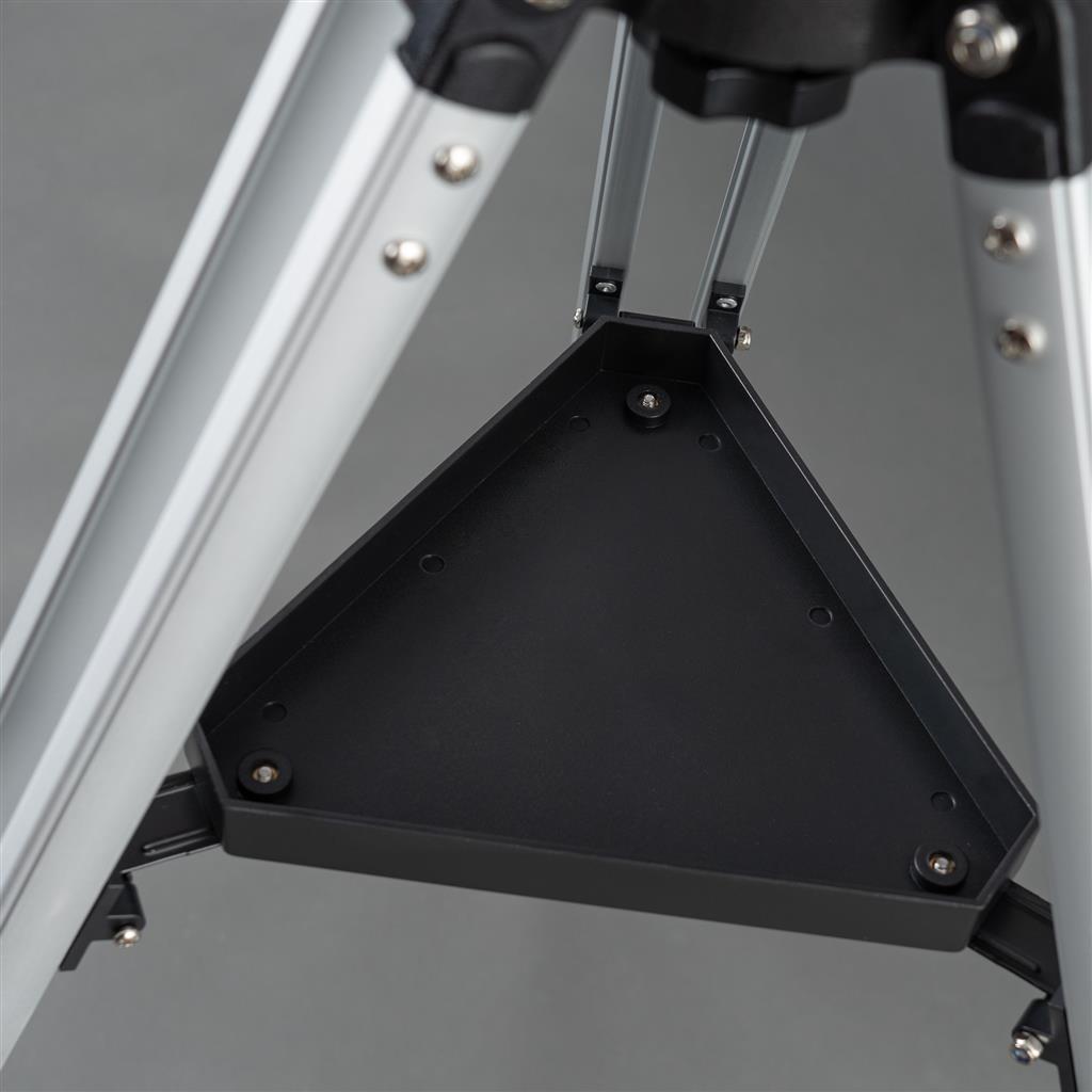 The telescope rests on a LT1 tripod with aluminium tripod legs. It combines high stability with low weight. This is a great advantage if you want to transport the telescope. The height of the tripod legs can be variably adjusted to ensure comfortable observation in an upright position - regardless of your body height. The triangle tray between the tripod legs is ideal for keeping eyepieces and other accessories while observing.