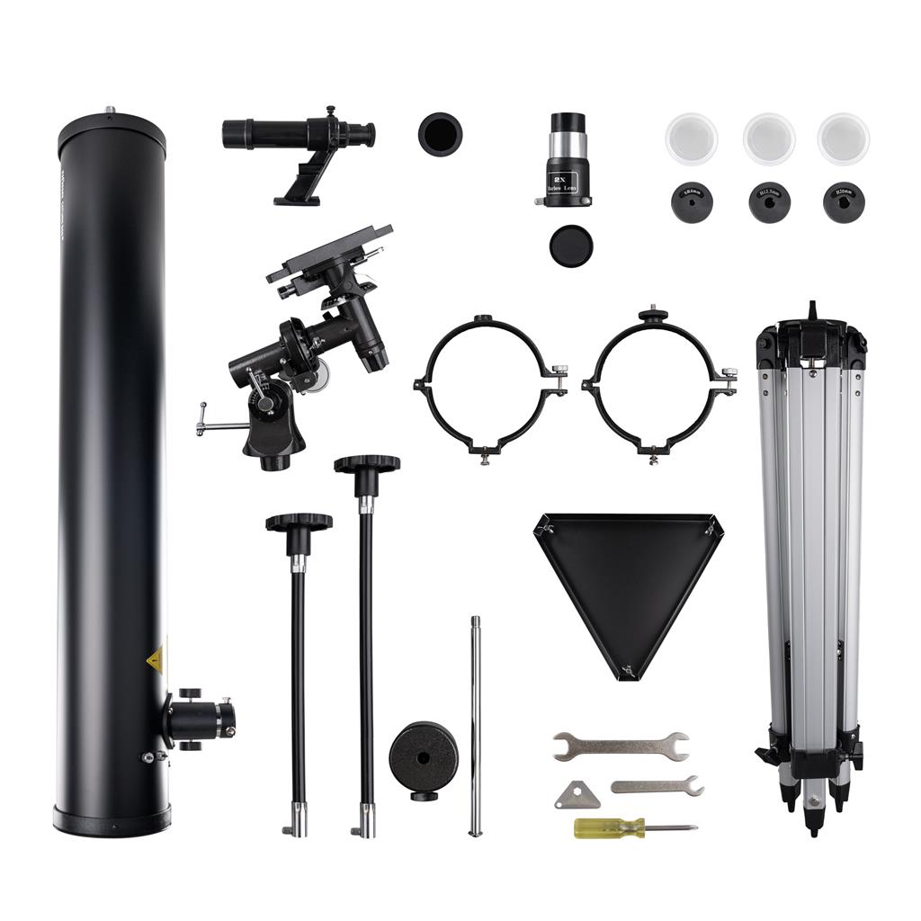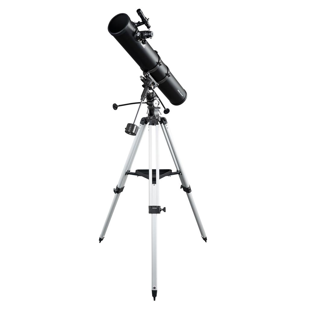 Gewicht ca.11000 gLieferumfang1x Teleskop, 1x Sucherfernrohr, 3x Okulare, 1x Barlowlinse 2x, 1x Mondfilter, 1x Montierung , 1x StativFarbeschwarz mattObjektivdurchmesser114 mmVergrößerung max.450 xVergrößerung min.45 xBrennweite900 mmTeleskop MontierungEQ-2 ÄquatorialTeleskop BauartNewton Spiegelteleskop (Reflektor Teleskop)Stativhöhe max. ca.134 cmStativhöhe min. ca.124 cmLichtstärke ca.1:7,9Außenmaß Länge ca.90 cmZubehöranschluss1 1/4 ZollHinweis LieferumfangAbgebildetes Zubehör, das nicht im Lieferumfang aufgeführt ist, nicht inklusive.HinweisWir behalten uns vor, technische und/oder gestalterische Änderungen ohne Ankündigung vorzunehmen.