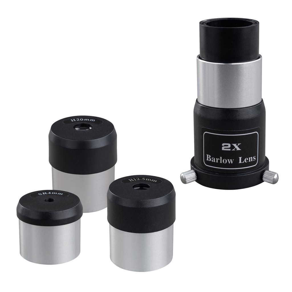 The eyepieces are part of the optical system. They are attached to the telescope and allow you to look into the telescope. The eyepiece used affects the magnification of the telescope. The SATURN comes with 3 eyepieces. They are equipped with a standardized 1.25" socket diameter: