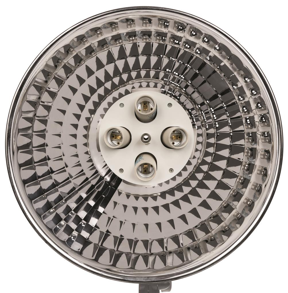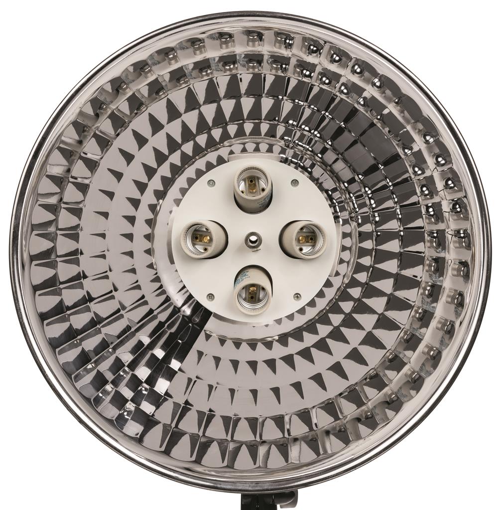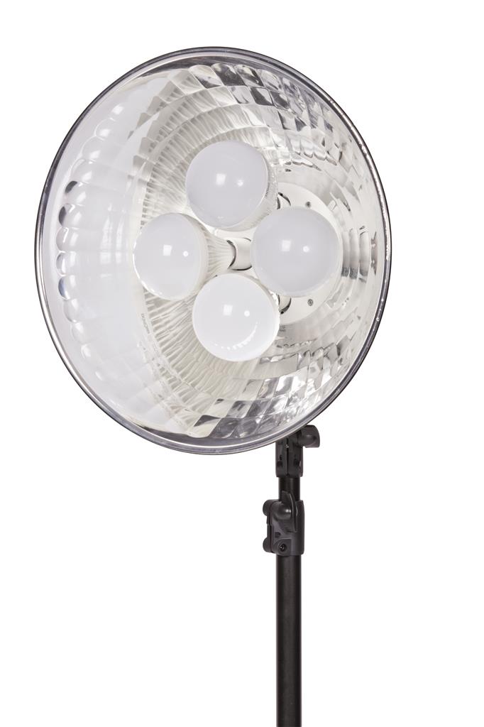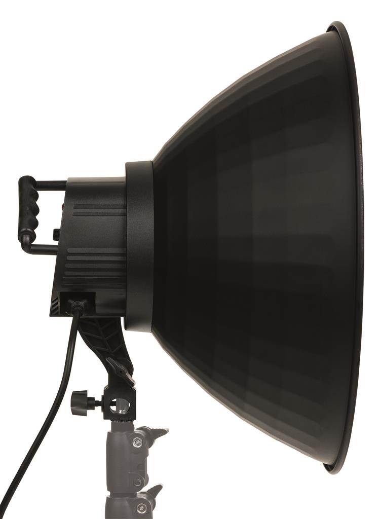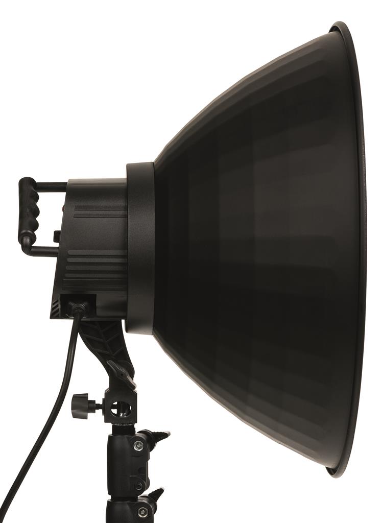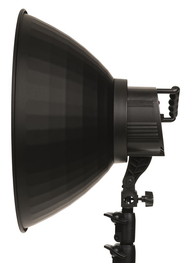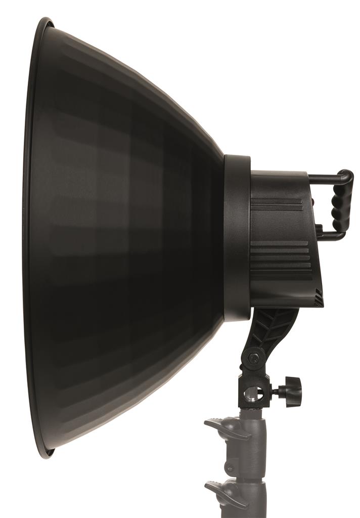 Reflector holder allows the use of an optional umbrella reflector (Supplied with diffusor cover for soft and diffuse light).