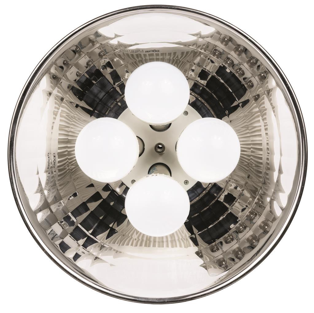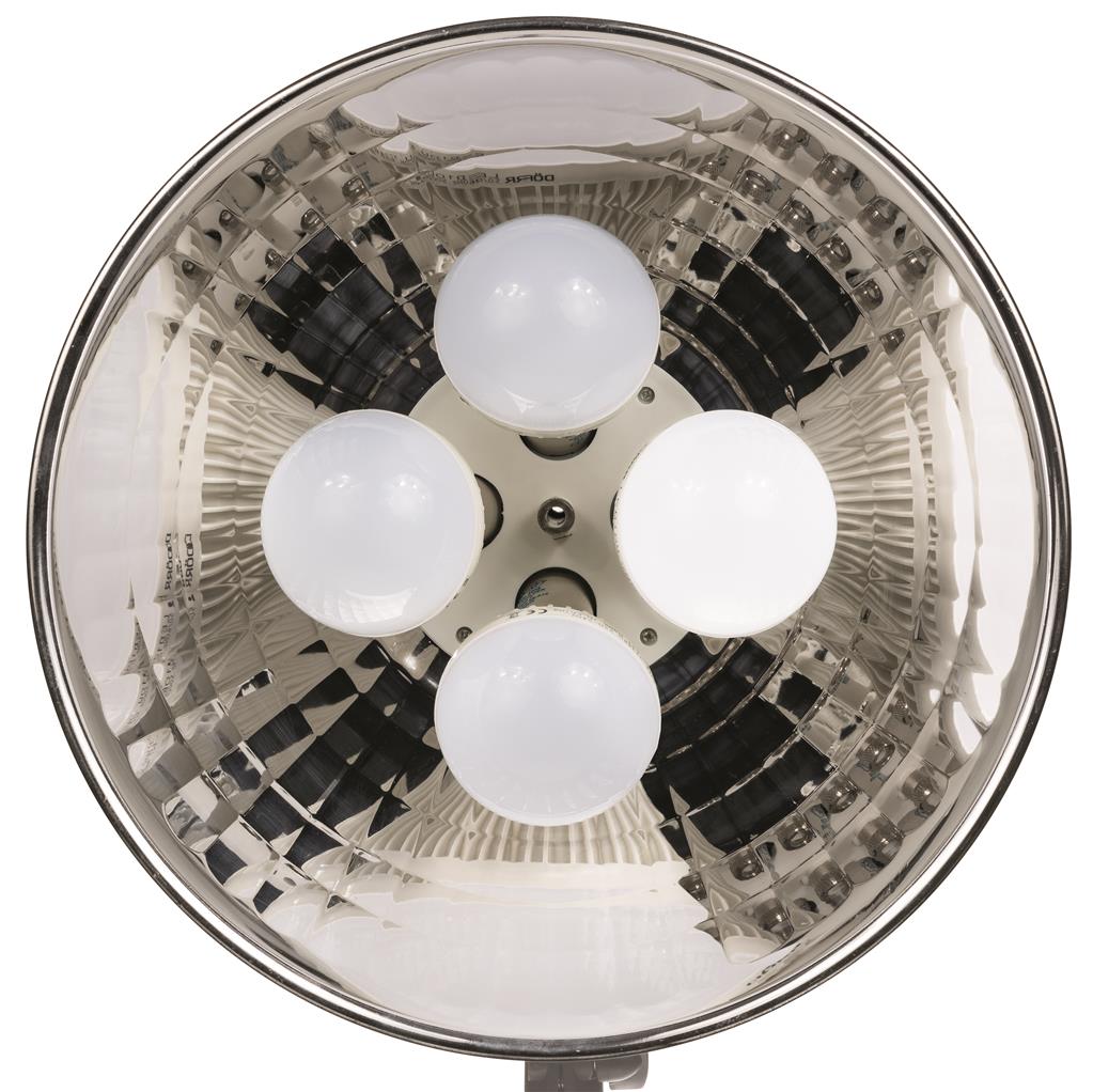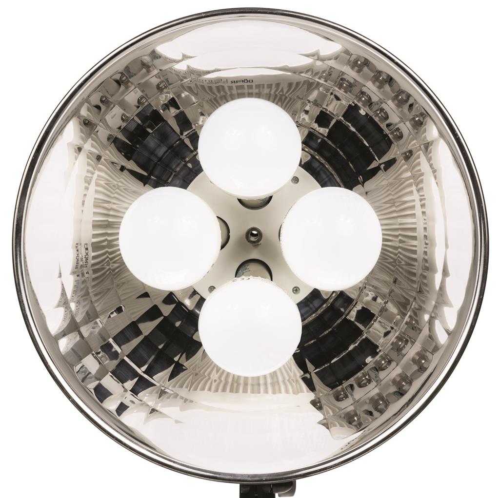 Energy-saving, environmentally friendly and safe LED bulbs with a colour temperature of about 5.000 K at 10W and 5.500 K at 25W provide a high colour fidelity. Depending on the desired light intensity, the 4 LED bulbs can be switched on and off individually.