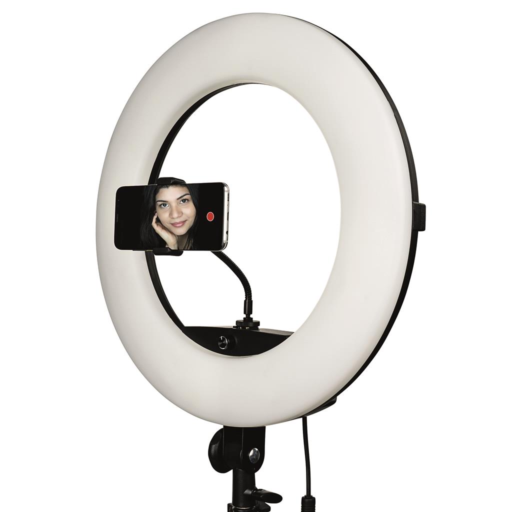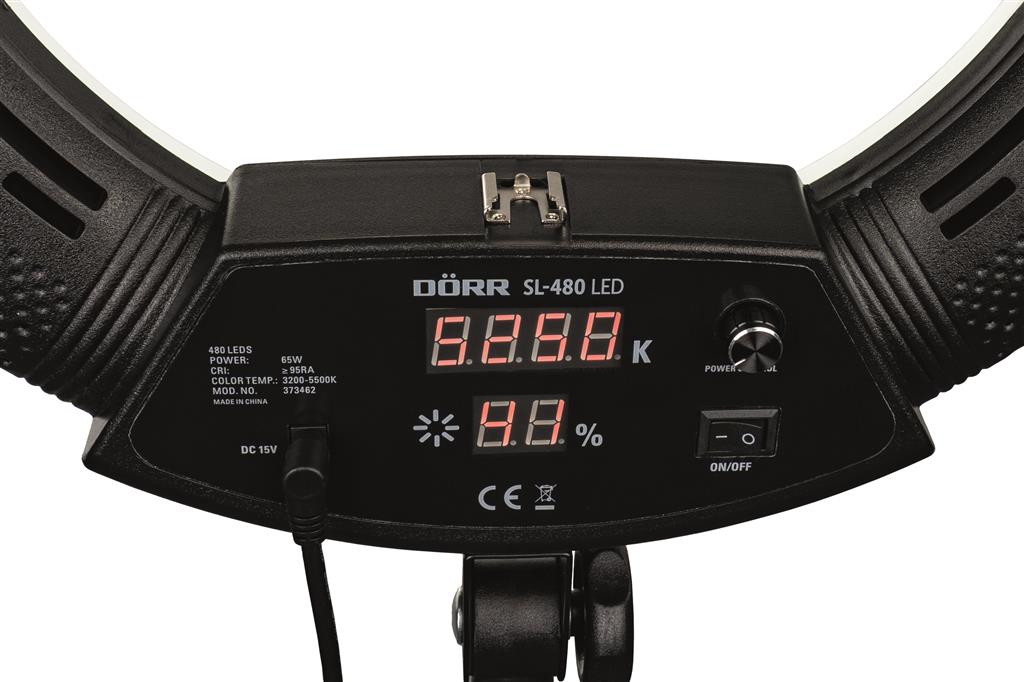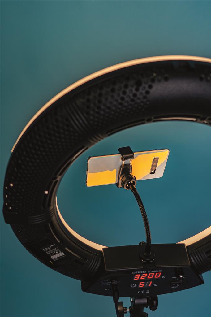 The versatile DÖRR LED Studio Ring Light SL-480 creates a very soft and almost shadow-free illumination of your recordings. The ring light is the ideal lighting for portraits, especially for beauty and glamour shootings, for product photography and for video shoots.