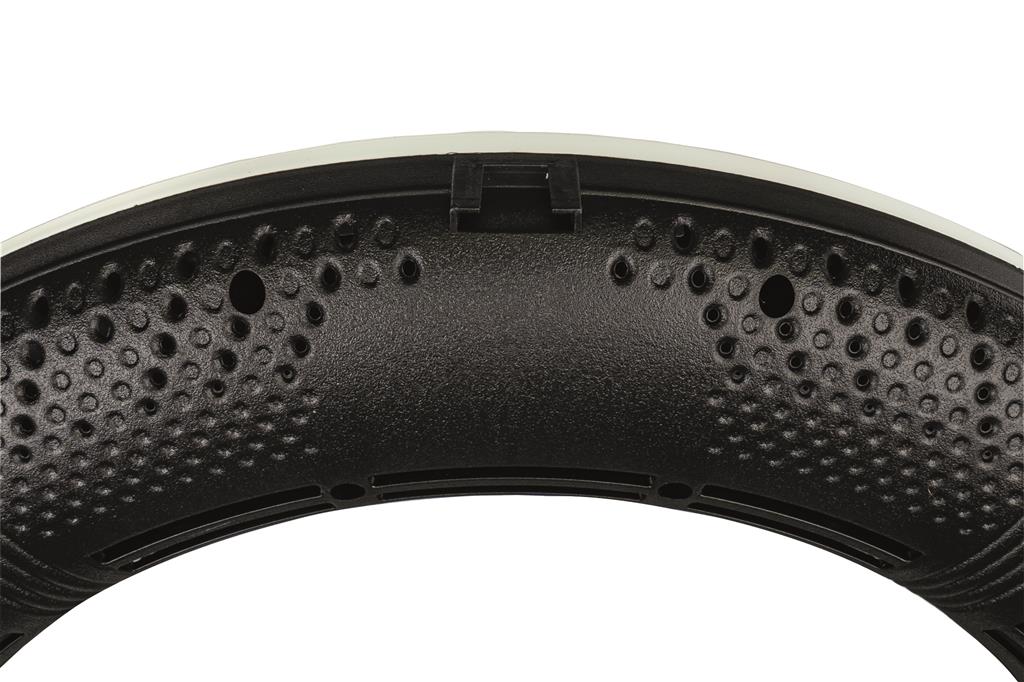 The LED studio light is fitted with a tiltable light stand mount. With the help of this mount, the ring light can simply be placed on any light stand with spigot. Suitable light stands are optionally available in the DÖRR Webshop.