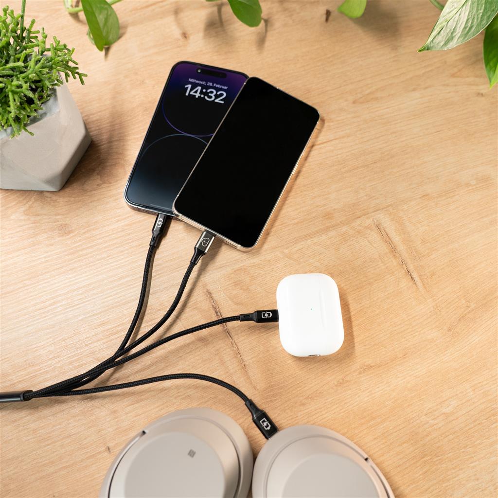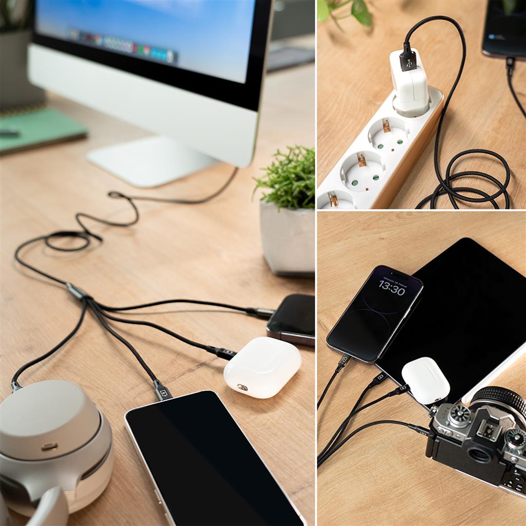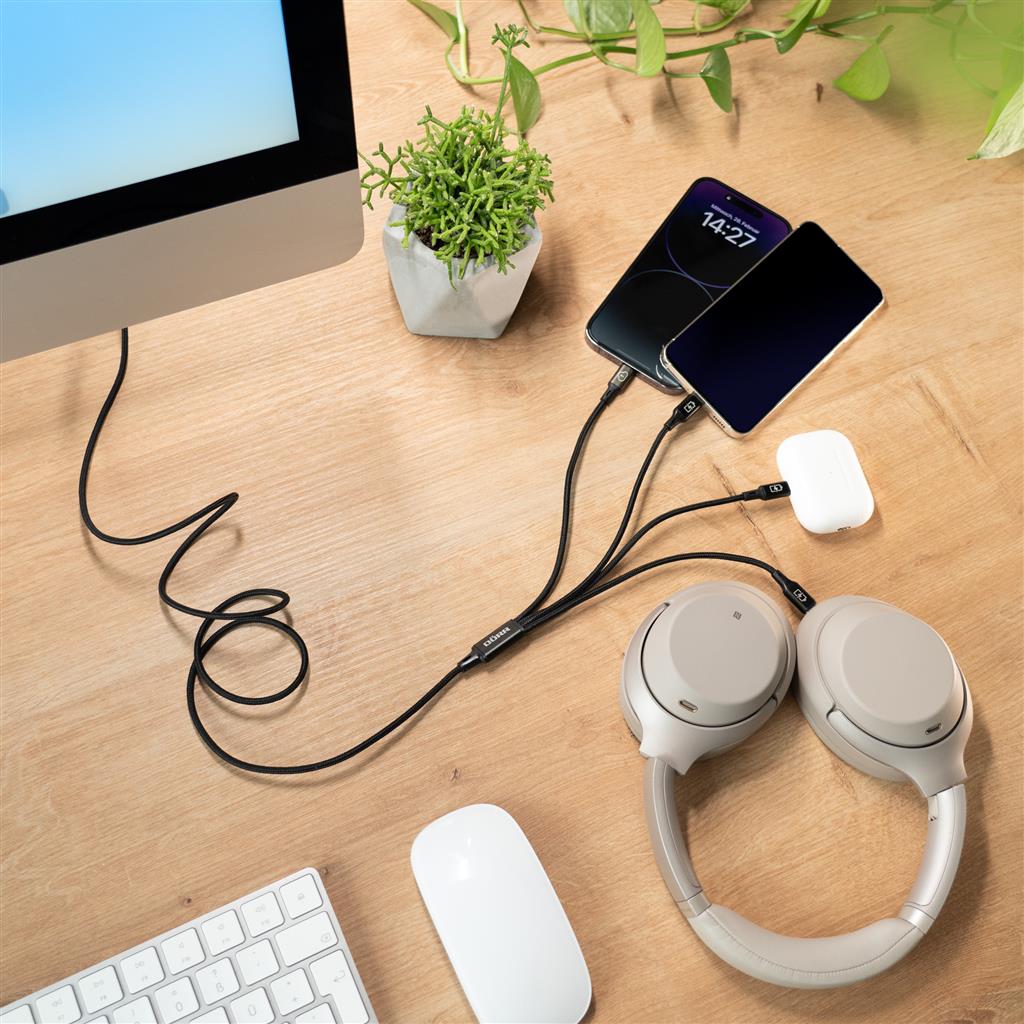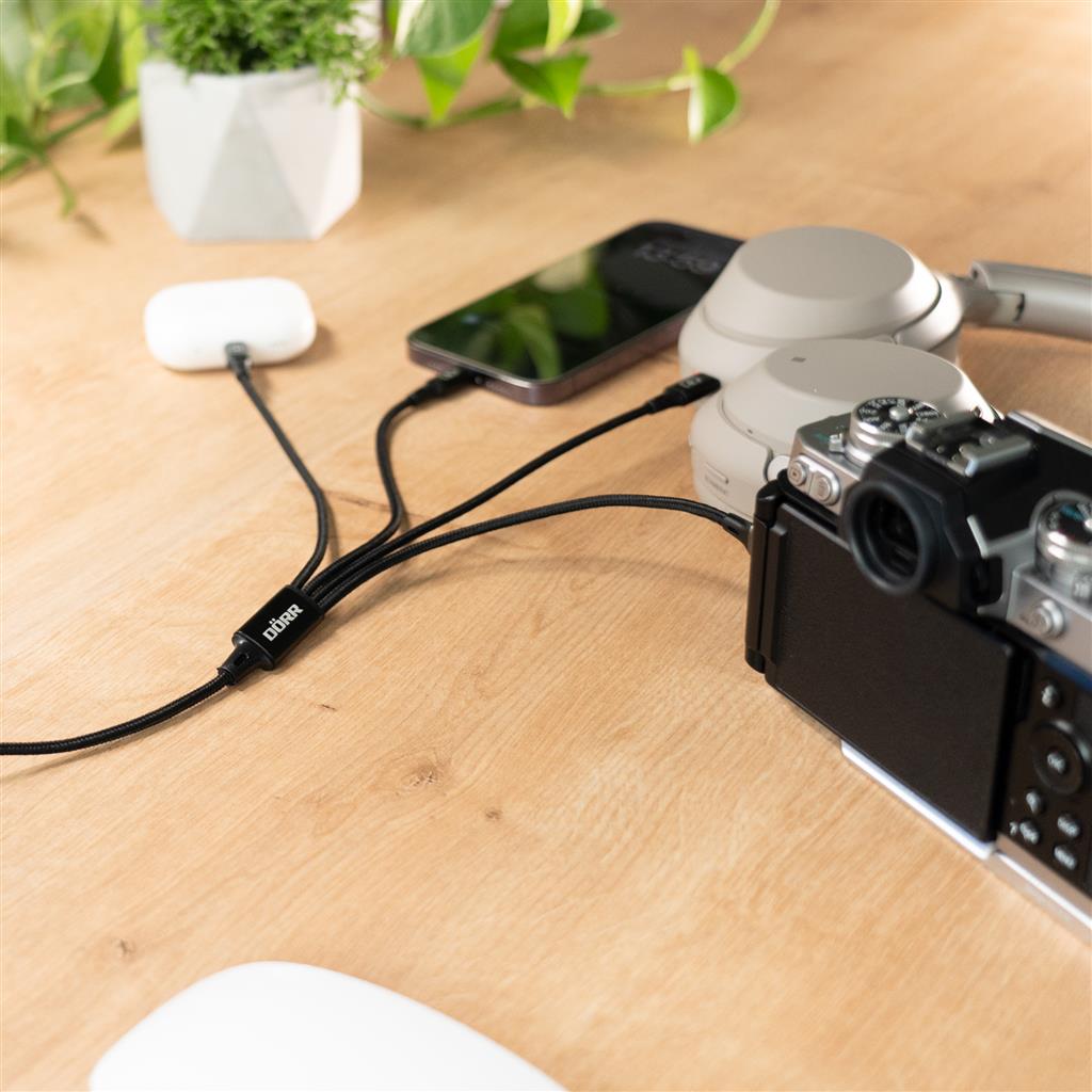 Are you tired of having to deal with a tangle of cables for your various devices? There's an end to that! Our brand new DÖRR 4-in-1 USB-C data and charging cable with Lightning® charging connectors is here to simplify your life.
