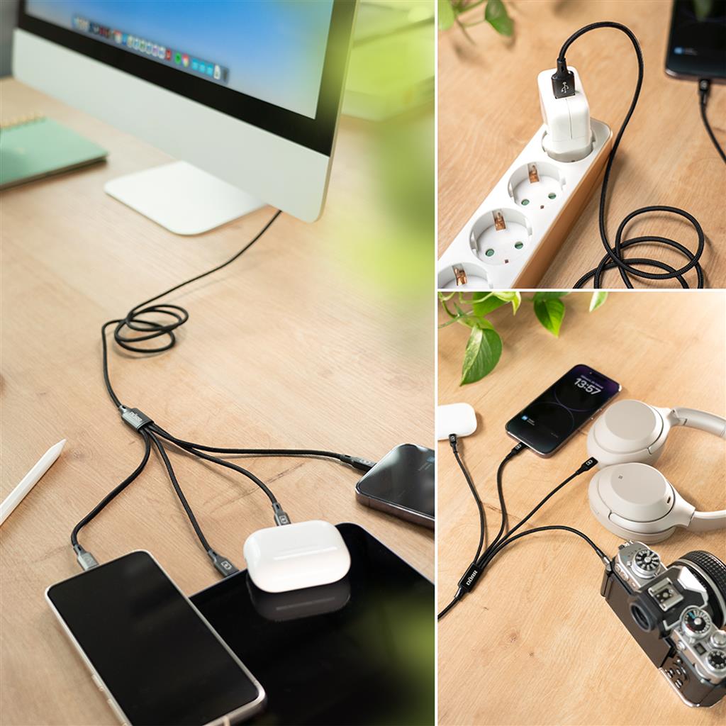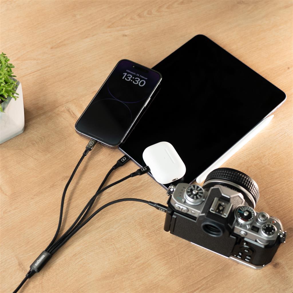 Put an end to cable chaos - get our 4-in-1 USB-C data and Lightning® charging cable now and experience maximum connectivity!