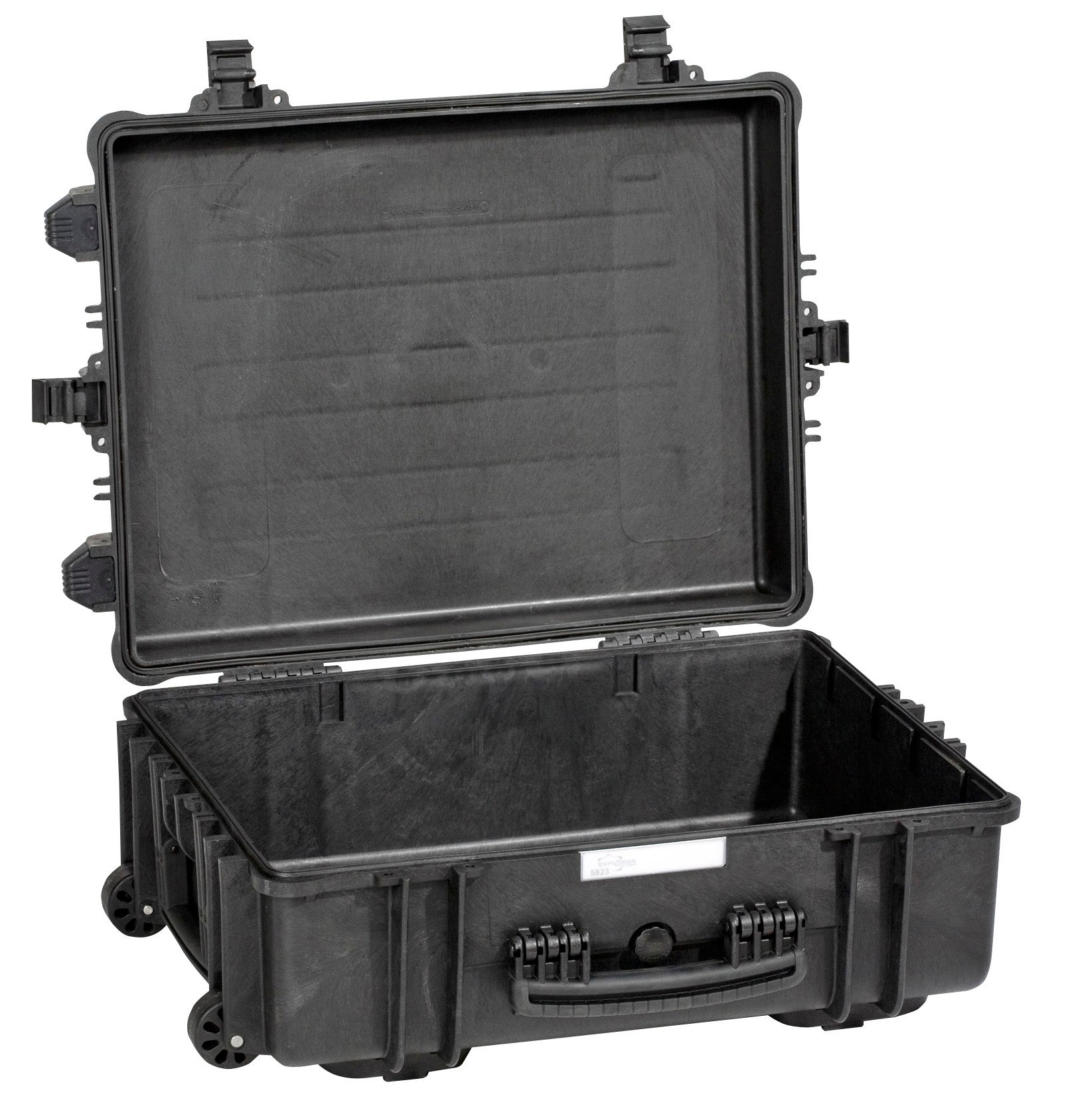 ✓ Personalise your EXPLORER case with the removable PVC label panel. Open the case and slide the plastic cover upwards to remove the label.