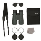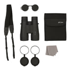 Perfect handling with ABS rubber armour. Fast and soundless focusing with centre focus wheel. Experience exciting observations with breath-taking viewing impressions, brilliant and of excellent sharpness and colour fidelity over the full field of view. Even at low visibility and in twilight the view remains clear and bright. The fully multi coated lenses and BAK-4 prisms as well as the dielectric anti-reflex coating of the prisms ensure an extremely high light transmission of more than 87%.