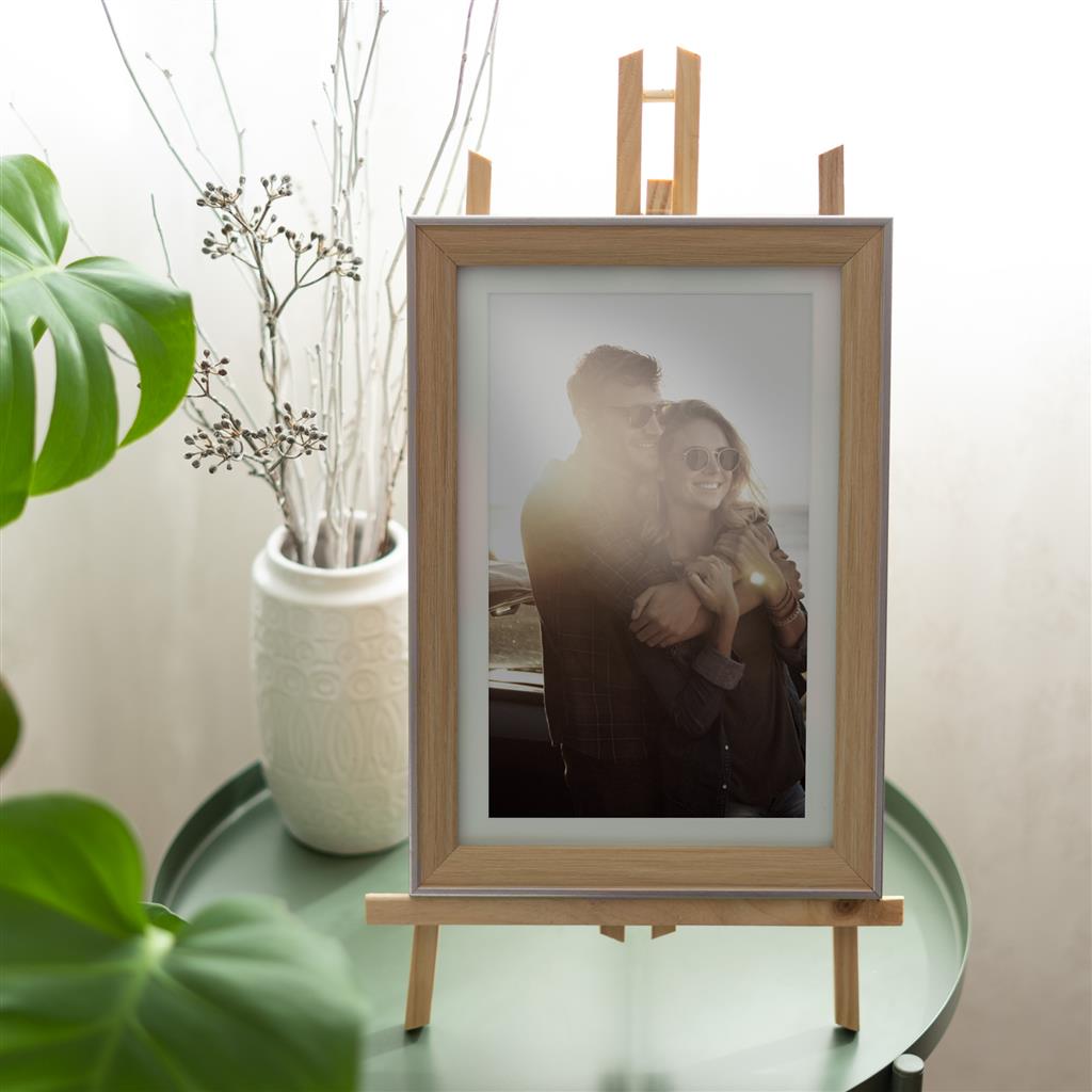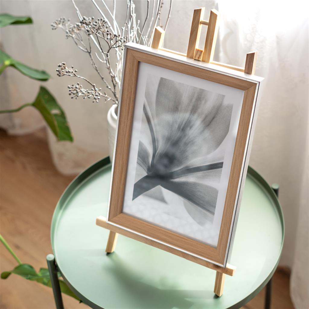 Large beech wooden easel for painting, decorating and presenting your favourite pictures. The crossbar holds picture frames, canvases, paintings and magnetic boards.