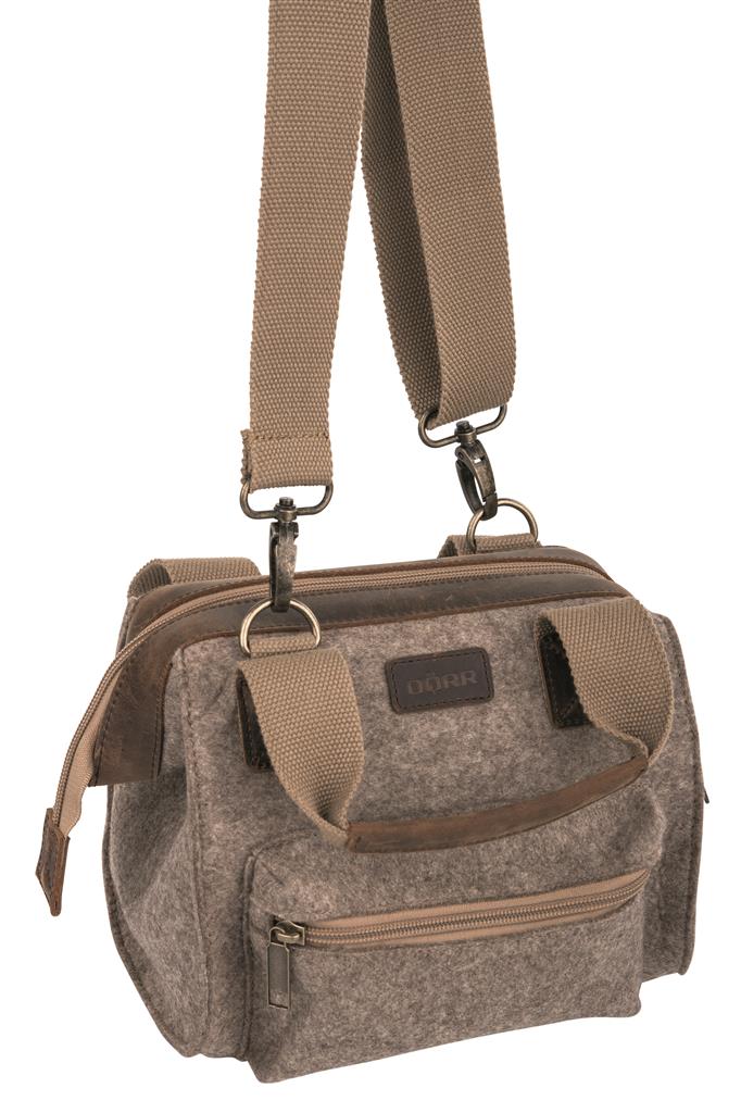 The combination of robust felt and genuine leather makes the DÖRR RANGER series low-noise and lightweight companions. The high-quality bags & backpacks impress with their classic and natural design. Colour contrasting genuine leather applications and patches add an irresistible charm to the bag.
