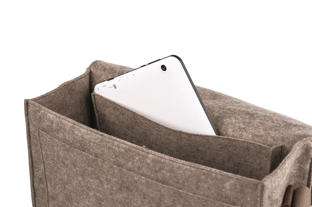 The genuine leather closures may be opened and closed silently. The photo compartment provides space for your digital camera, equipment and accessories and can be removed if necessary. Without the photo compartment you may use the bag as a shopper or for your documents. The separate inner compartment fits for tablets and notebook up to a size of 10”. With the adjustable shoulder strap, you may carry the bag comfortably over your shoulder.