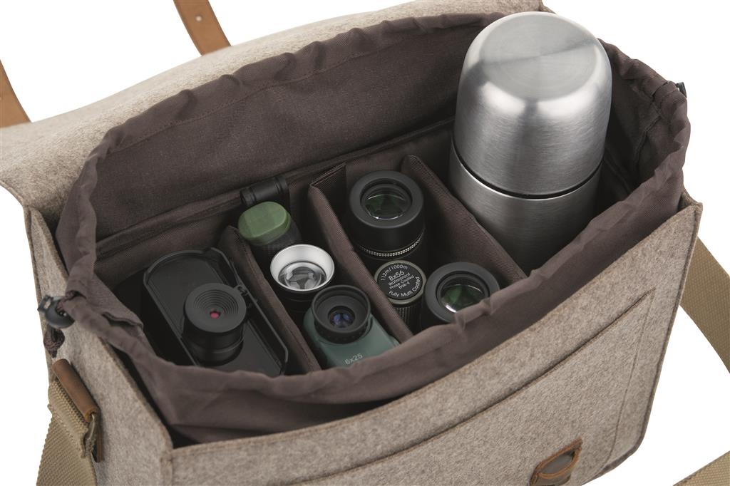 The genuine leather closures may be opened and closed silently. The photo compartment provides space for your digital camera, equipment and accessories and can be removed if necessary. Without the photo compartment you may use the bag as a shopper or for your documents. The separate inner compartment fits for tablets and notebook up to a size of 10”. Either use the carrying handle to carry the lightweight bag or alternatively use the adjustable shoulder strap and carry the bag comfortably over your shoulder.