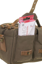- Canvas Material kombiniert mit Griffen und Verschlüssen aus echtem Leder - Innenfutter aus Baumwollgewebe - Ausgestattet mit robusten Metall-Karabinern und -Ösen