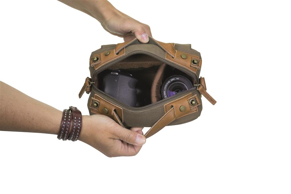 Die ARIZONA Fototaschen wurden aus hochwertigsten Materialien gefertigt und im populären Vintage Stil gehalten. Das Canvas Material kombiniert mit Griffen & Verschlüssen aus echtem Leder, sowie das Innenfutter aus Baumwollgewebe, verleiht den Taschen den klassischen Look.