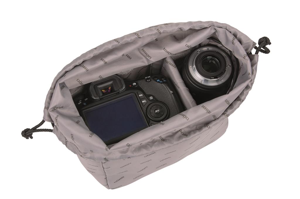 Although the DÖRR Ocean photo bags are of compact design, they offer plenty of room for the photo gear. A nice gadget: the small compass at the front loop.