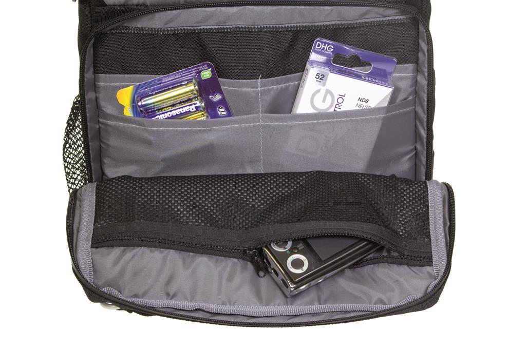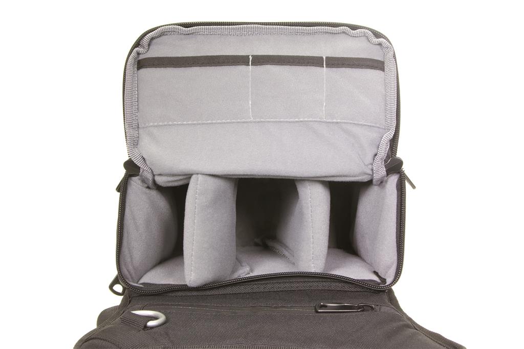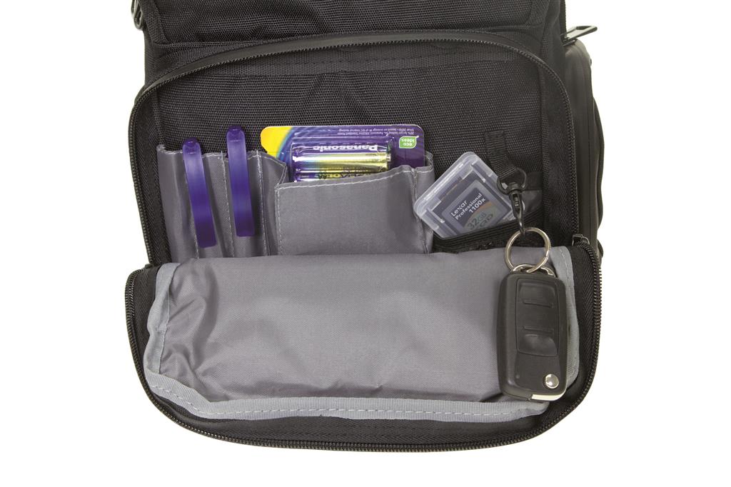 Dazu hat die Tasche top Fächer. Große Canon und zwei Standard Zooms problemlos. Dazu Haufen Stauraum.