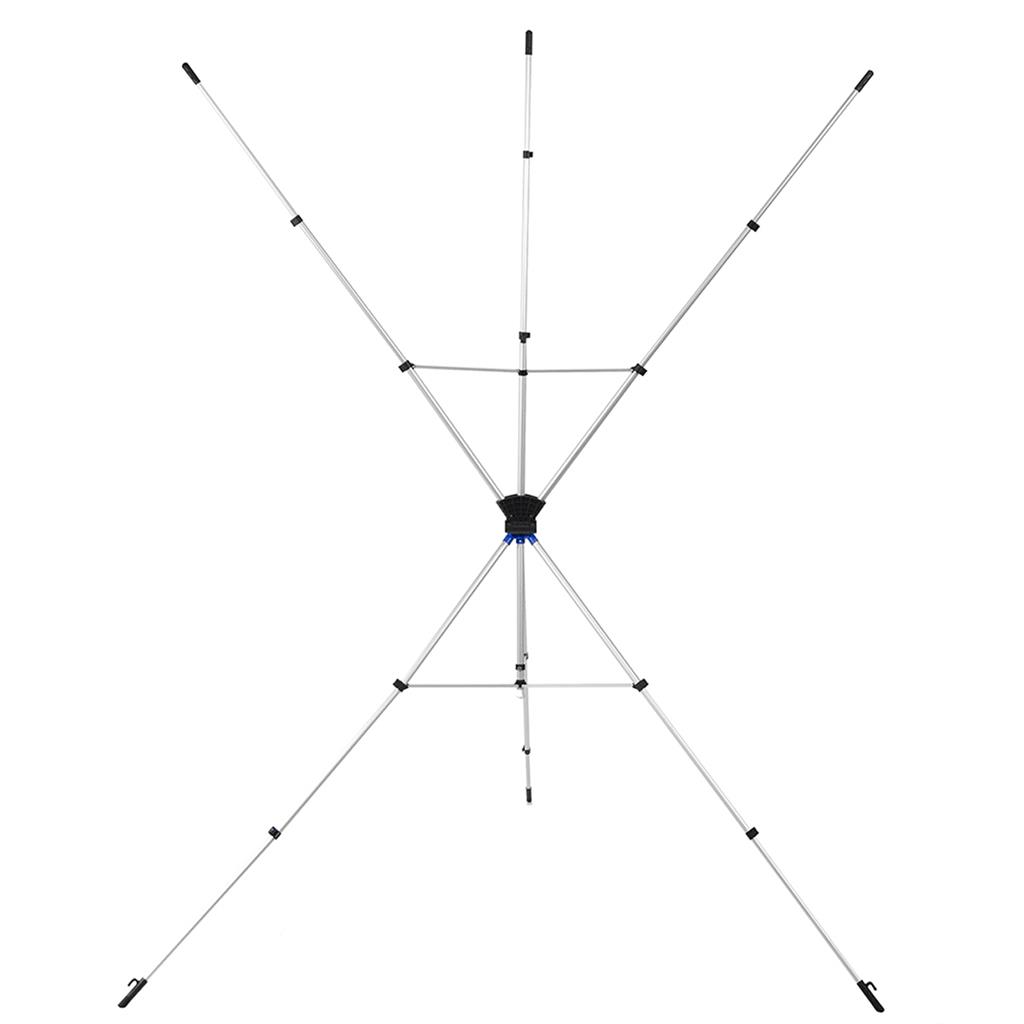 Thanks to the one-piece design, the high-quality aluminum stand can be set up easily - without having to fiddle with extra arms or losing separate parts along the way. The five star-shaped tripod arms with hanging hooks pulls the backdrop taut from top to bottom for a wrinkle-free and seamless portrait background.