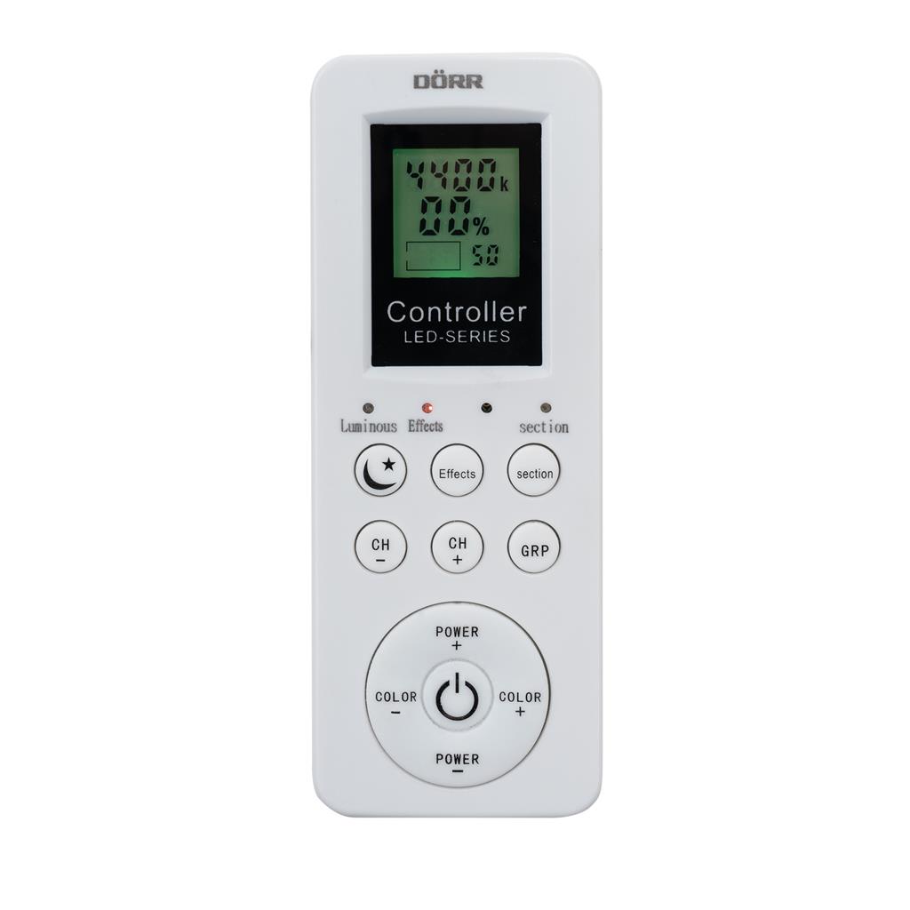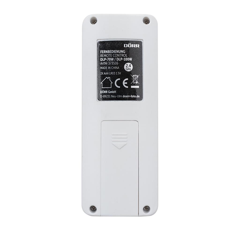 When using several LED continuous lights, each unit can be controlled individually with only one remote control. The lights can be divided into up to 6 groups for this purpose. DÖRR DLP-70W and DÖRR DLP-100W units can be combined with each other. The radio remote control is compatible with both types of DLP and can control both types of units. The range of the radio remote control is approx. 30 m.