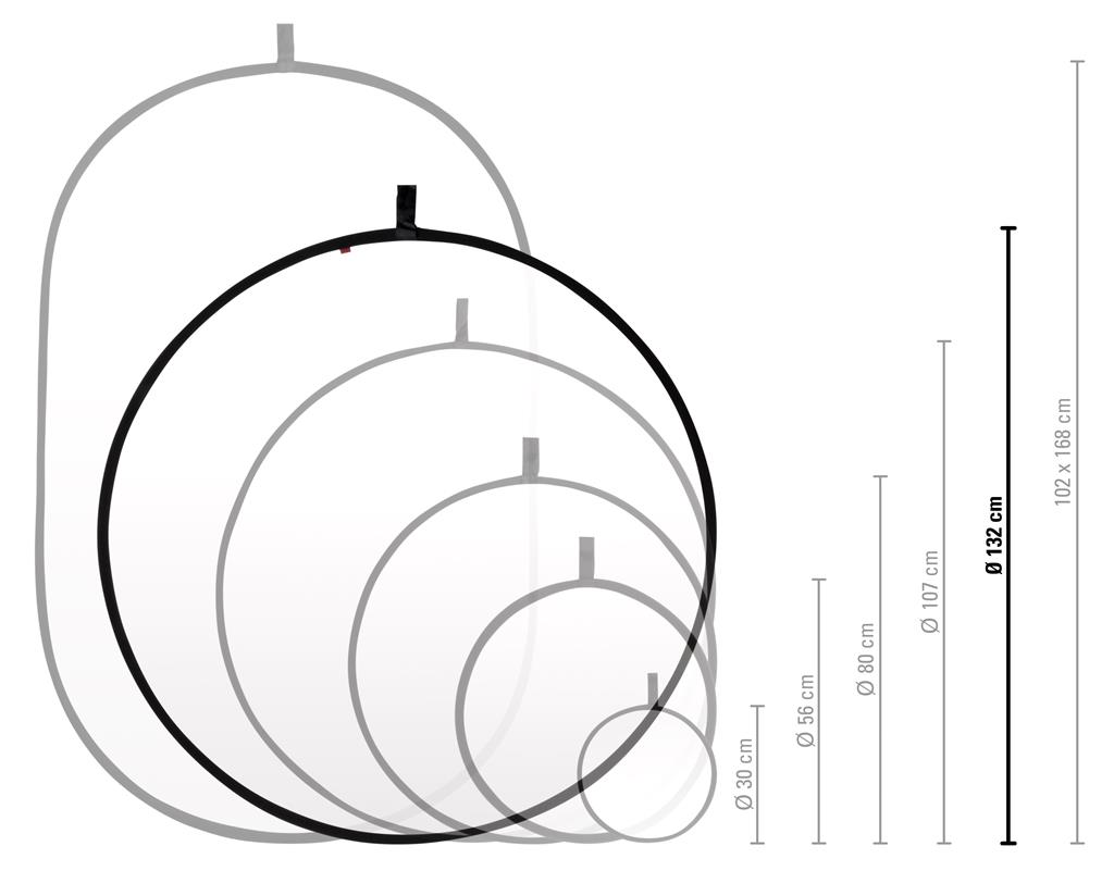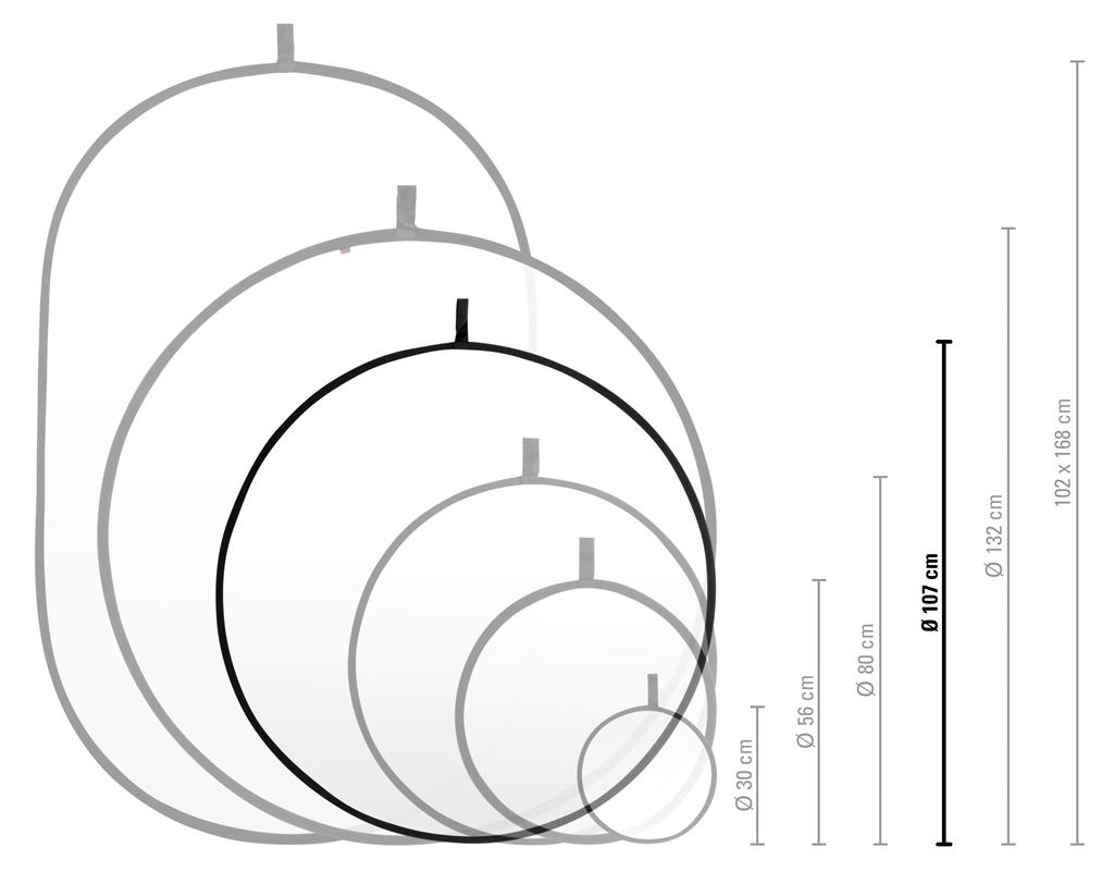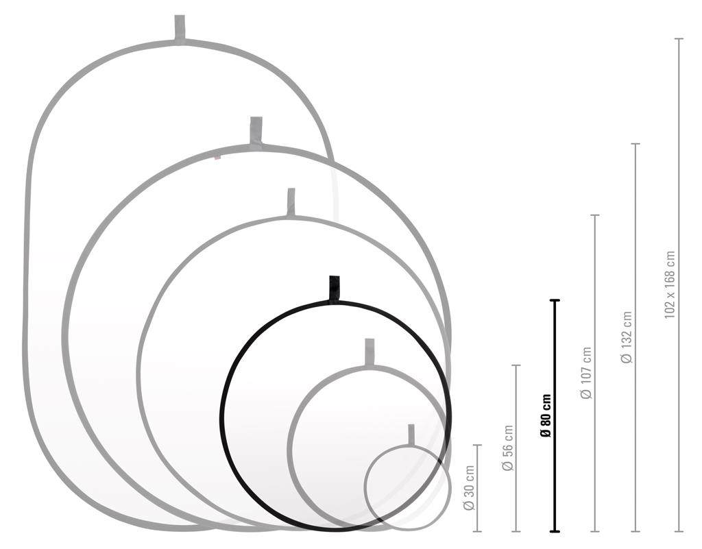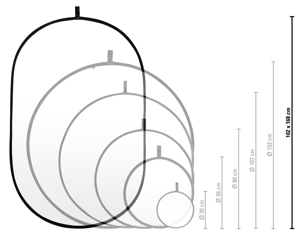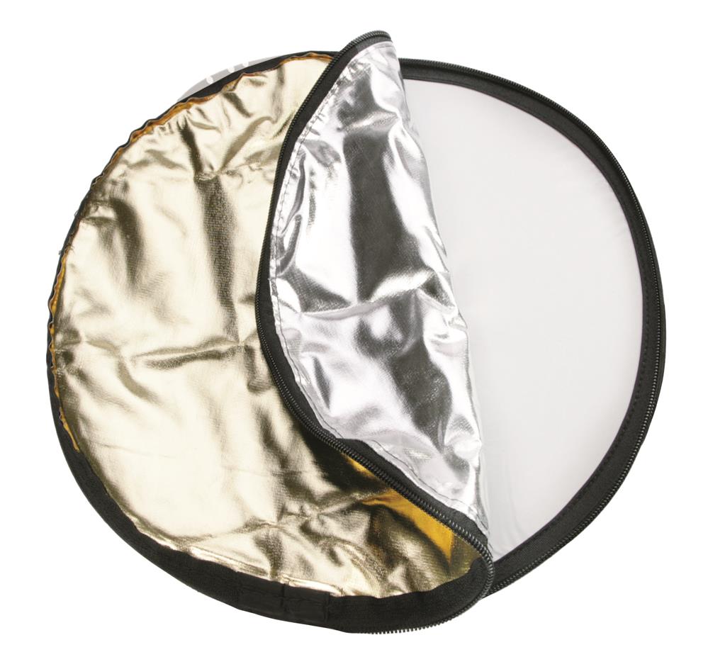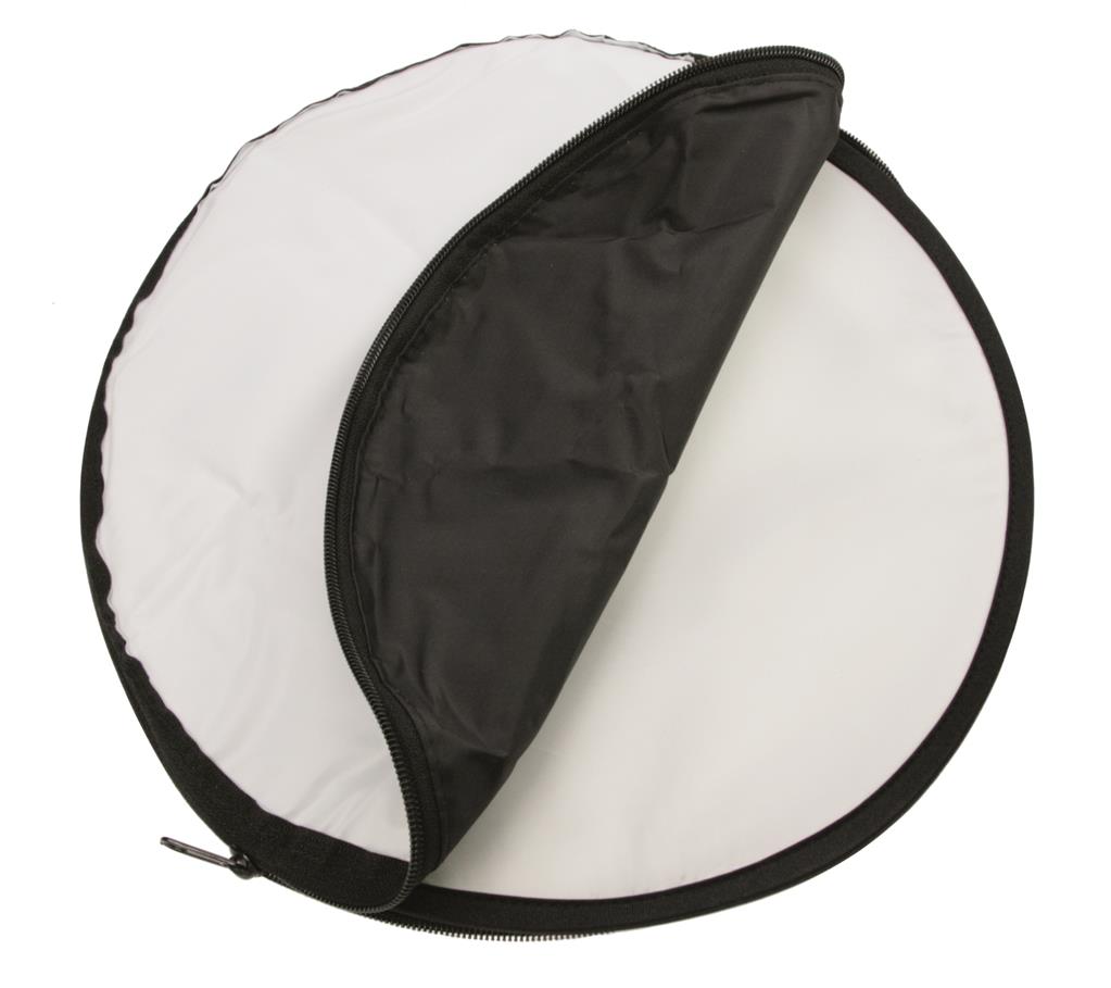 The diffusor surface has a diameter of 56 cm and is perfect for portraits of single persons. The reflector can be folded and stowed in the supplied transport bag. This saves space and is ideal for mobile use. In the studio the foldable reflector can optimally be used to brighten up unwanted shadows. For installation, a reflector holder is optionally available from DÖRR: