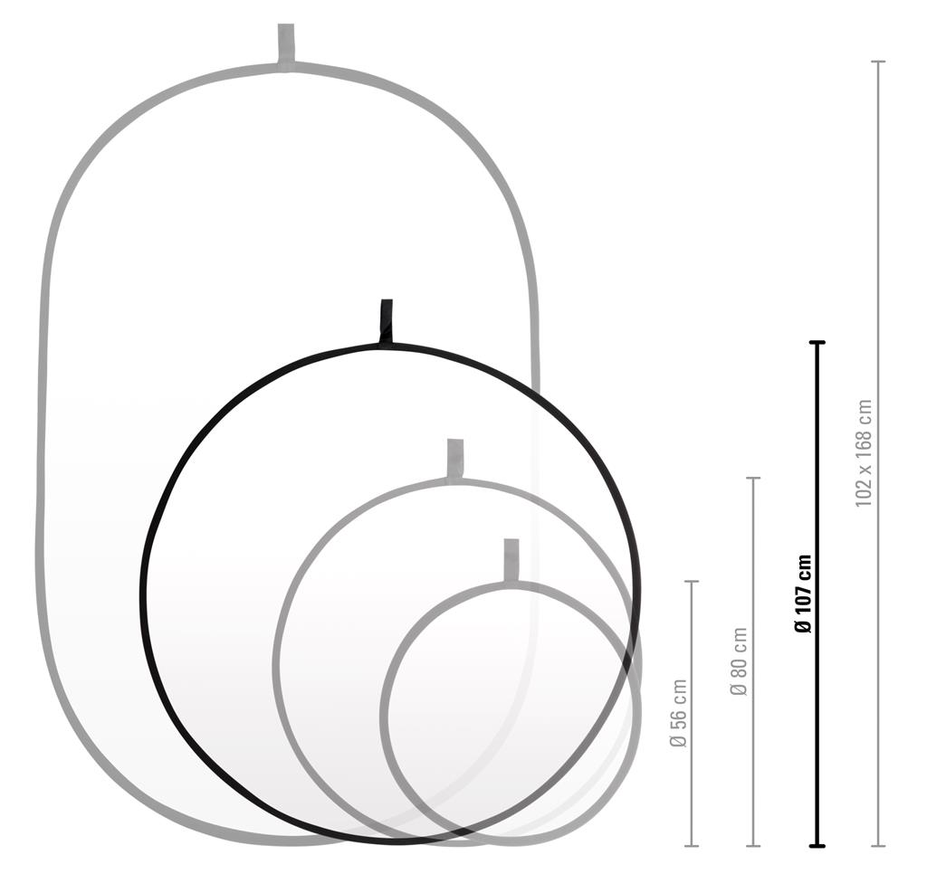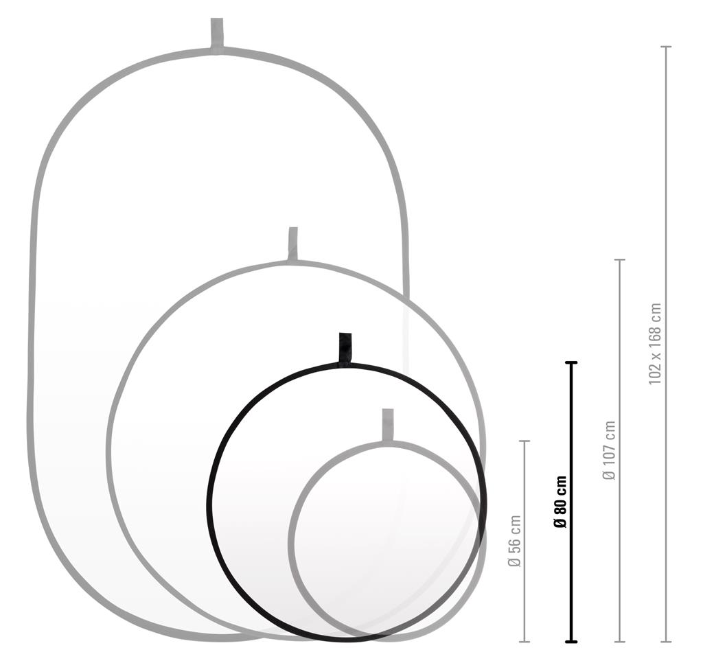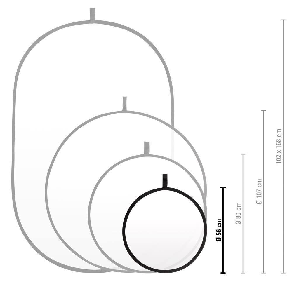 The diffusor surface has a diameter of 56 cm and is perfect for portraits of single persons. The reflector can be folded and stowed in the supplied transport bag. This saves space and is ideal for mobile use. In the studio the foldable reflector can optimally be used to brighten up unwanted shadows. For installation, a reflector holder is optionally available from DÖRR: