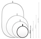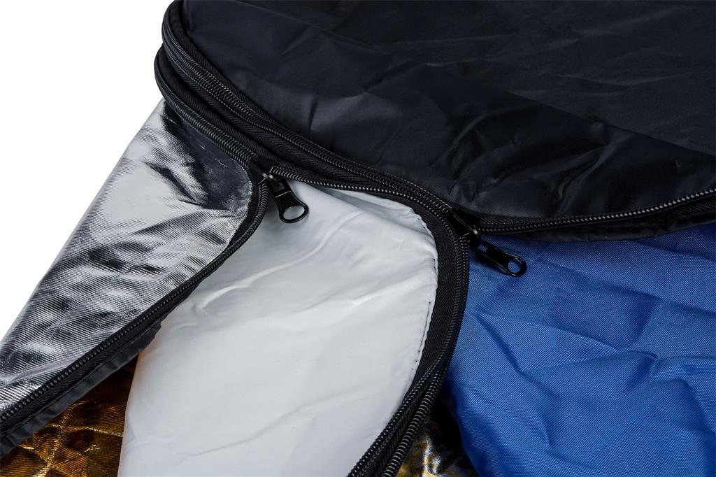 The base is a round shaped diffusor covered with neutral, transparent fabric. When holding the diffusor between the subject and the sun, the light becomes more diffuse. The diffusor converts hard sunlight into pleasantly soft light, perfectly suited for portrait shootings. For reflections, the respective reflector cover can be pulled over the diffusor and closed with a zipper. Depending on the used reflector cover, you can choose how you want to reflect the light: