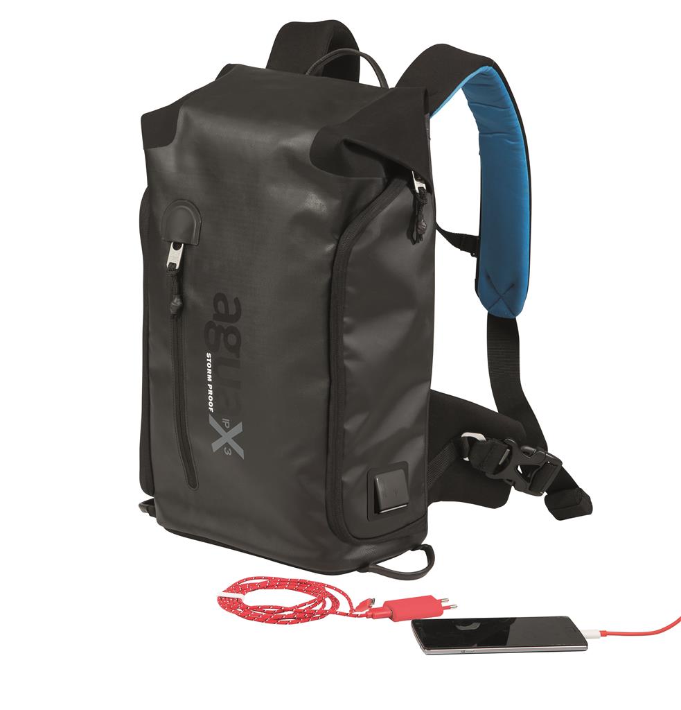 The Versa Backpack gives you three carrying options in one: as a 2-strap comfortable and stylish backpack, as a quick-draw right-side sling carried over your right shoulder and as a backpack with straps in "X" position, for comfortable carrying and quick-draw option. At the bottom of the side there is an external USB connector with two ports, which allows the addition of a power bank in an internal dedicated pouch, so you can easily charge your smartphone, tablet, and any other USB-connected device. You can also charge the power bank without removing it from the bag.