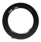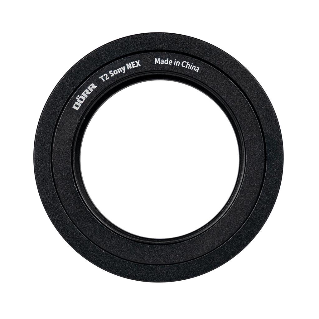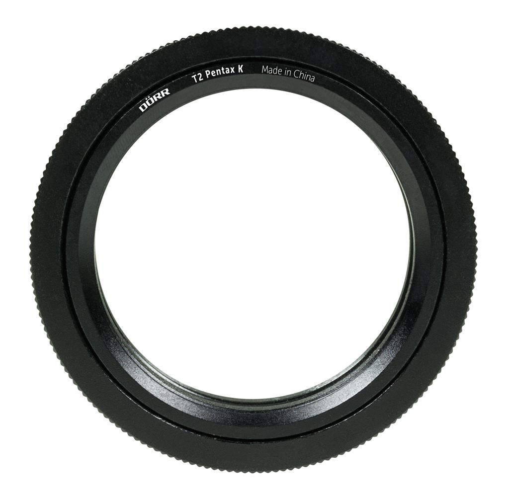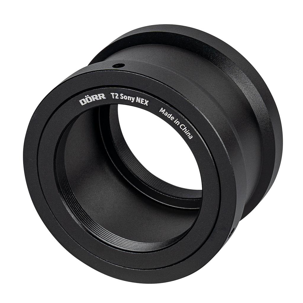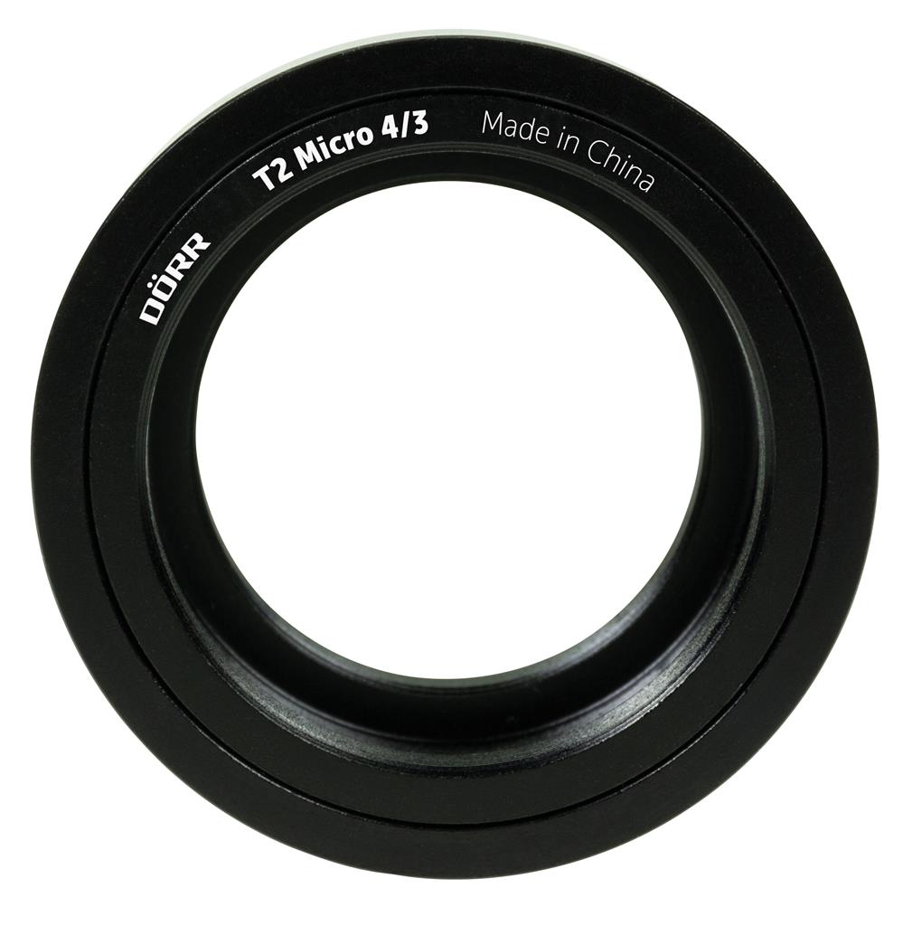 High-quality DÖRR T2 adapter for connecting lenses, slide duplicators, extension bellows and other accessories with T2 screw thread to DSLR & DSLM cameras.
