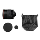 Furthermore, the lens comes with a lens cap, a lens rear cap and a pouch.