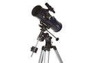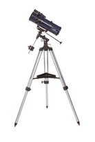 The EQ2 equatorial mount, also called parallactic mount, consists of 2 axes: the pole or hour axis (right ascension) and the declination axis for setting the coordinates of the object being observed. The mount is also equipped with flexible tracking shafts for fine adjustment of the two axes. A counterweight on the declination axis balances the telescope.
