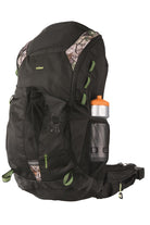 Spacious black hunting and outdoor backpack with camouflage appliqués. The sturdy backpack frame with net ensures an optimum ventilation of the user’s back. In combination with the padded belt system a perfect carrying comfort is granted. Nevertheless, the backpack is remarkably lightweight and offers a great number of useful features. The Hunter Pro 32 is an ideal backpack on the hunt and for many other outdoor activities.